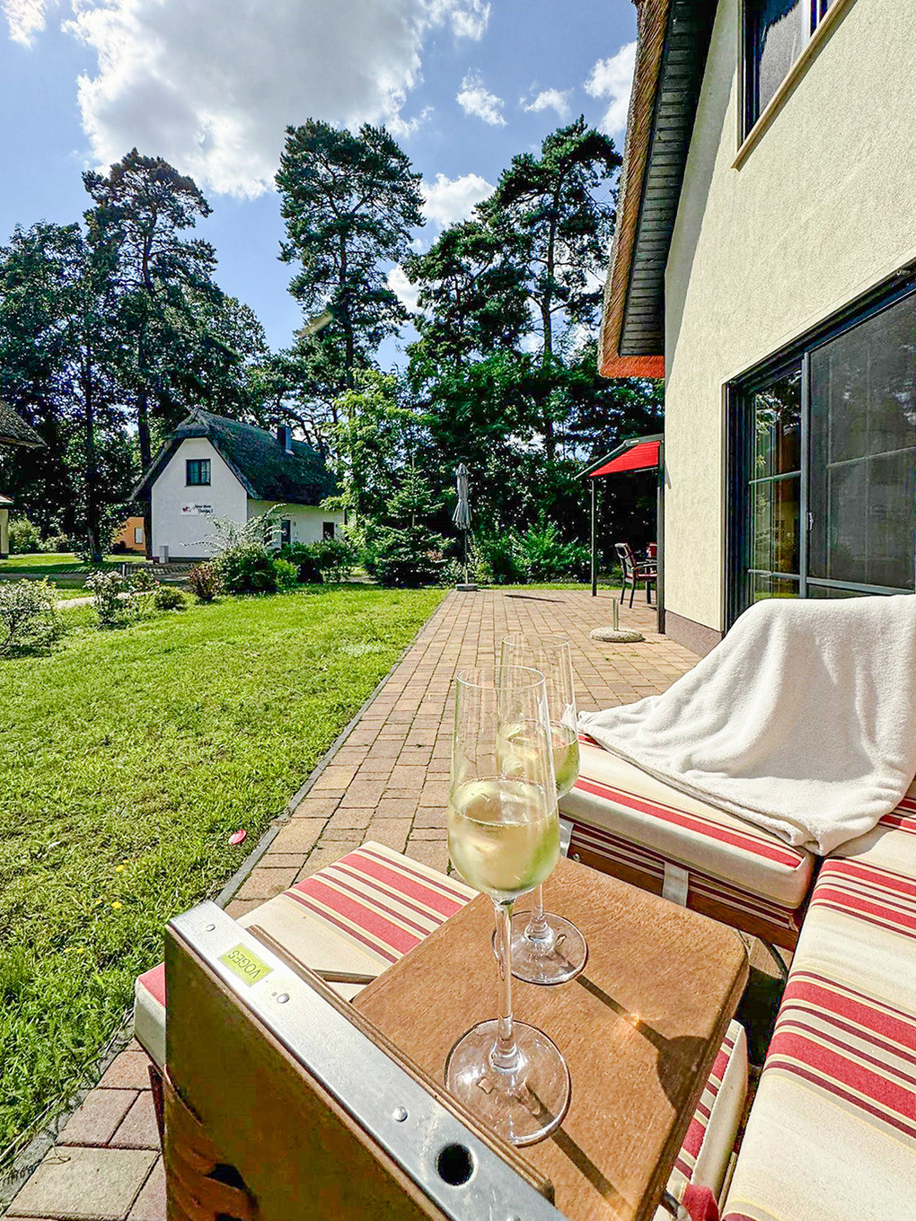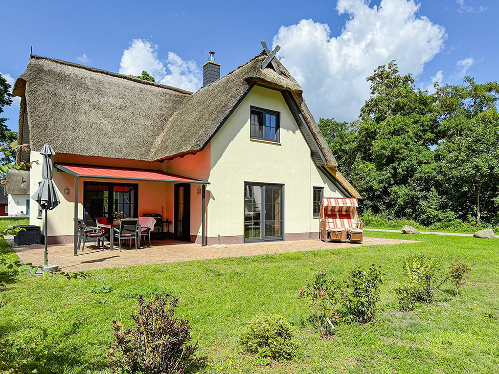 Haus: Großzügig angelegte Ferienhausanlage auf großem gepflegtem Areal (10 ha) mit lichtem Baumbestand. Hochwertige, reetgedeckte Ferienhäuser mit Sauna, Kaminofen. Gehobene Ausstattung mit geschmackvoller Möblierung. Elektrische Rollläden und Markisen. Fußbodenheizung. Kostenloser Internetzugang über WLAN. Mückenschutz, auch an den Türen. 2 Terrassen mit Sitzmöbeln. Anbau für 2 Fahrräder mit Lademöglichkeit. 2 Pkw-Stellplätzen/Haus. Ladestation für E-Autos.