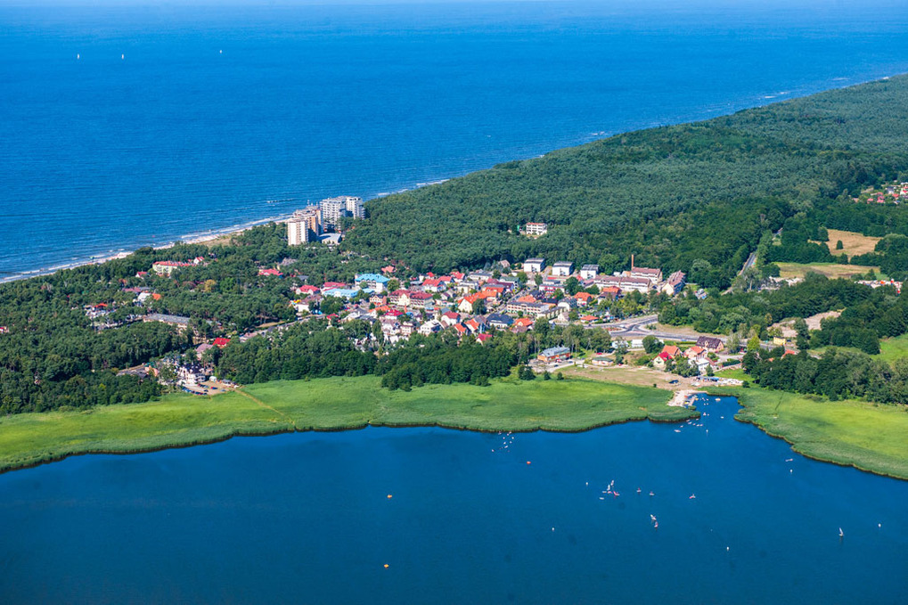 Ort: Dziwnowek (Walddievenow), Hervorragende, ruhige Lage direkt am Wrzosowski See. Kleiner Steg mit Bänken und Angelmöglichkeiten am Wrzosowski See 150 m. Wassersportschule mit Kite-, Surfausrüstung, Bootverleih, Badestelle und Angelmöglichkeiten 1900 m. Einkaufsmöglichkeiten 600 m, Supermarkt, Restaurants 1950 m. Ostseestrand 2700 m. Baltycki Dinosaurier-Park (Themenpark mit Tieren, Fahrgeschäften und großen Dinosauriermodellen) 2700 m.