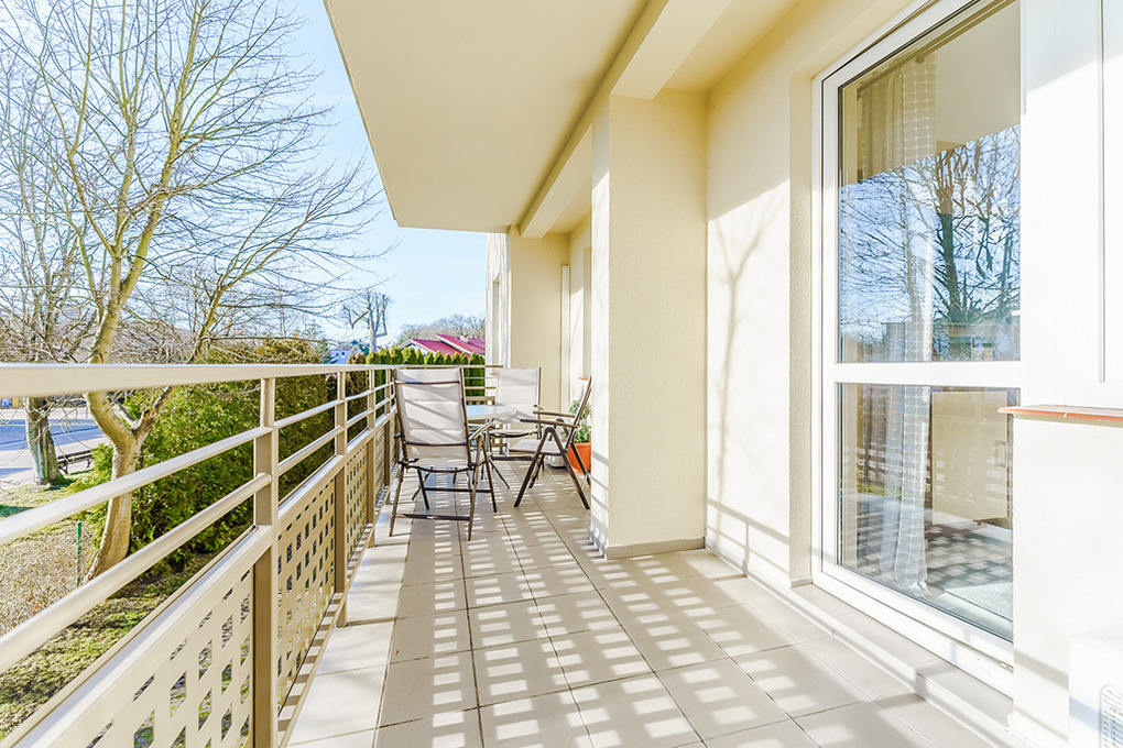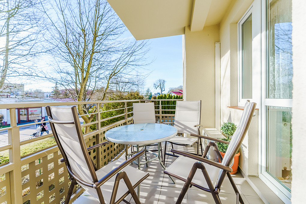 Ort: Ostseebad Kolobrzeg (Kolberg). Sehr gute, ruhige Lage in einem Wohnviertel direkt am Küstenpark. Ostseestrand 300 m. Einkaufen 50 m. Cafes, Restaurants 150 m. Fischereihafen mit Fischmarkt, Restaurants 850 m. Öffentliche, moderne Sportanlage mit Hallenbad, Rutschen, Sauna-Landschaft, Fußballfeld, Tennisplätzen, Bogenschießstand, überdachtem Kinderspielparadies 950 m. Altstadt mit Mariendom, neugotischem Rathaus 2,3 km. Leuchtturm, Passagierkai mit Ausflugsschiffen, Restaurants 2,5 km.
