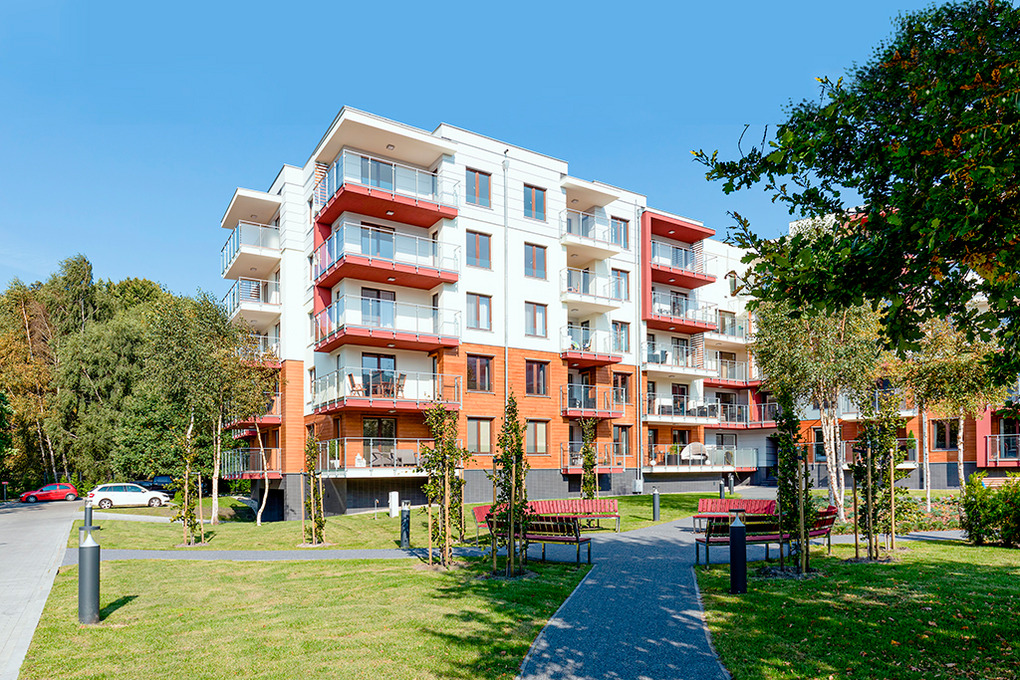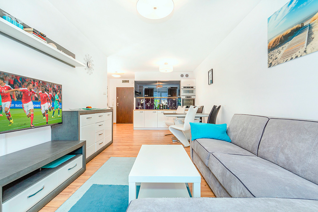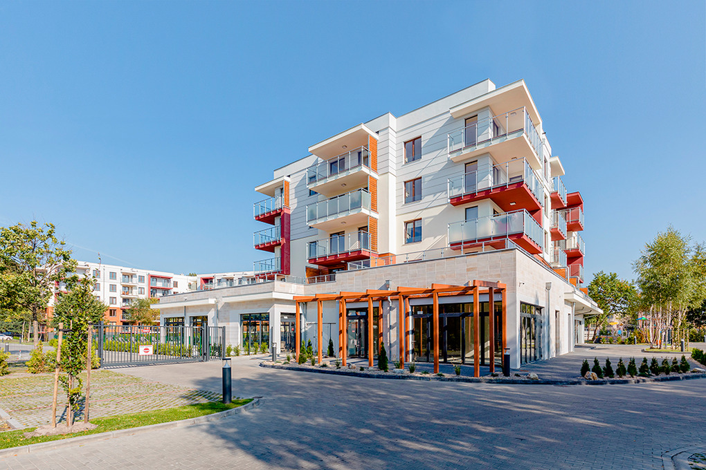 Haus: Neue Residenz mit modernen, schönen Ferienwohnungen, 2017 gebaut. Aufzug im Haus. In der Anlage zur kostenlosen Nutzung: Rezeption, überdachter SPA-Bereich: großes Schwimmbecken, Kinderbecken, Whirlpool, Finnische Sauna, Ruheliegen. Großer Fitnessraum. Kinderspielraum. Kleines Außenbecken mit Rutsche für Kinder (beheizt von Mitte Juni bis Ende August). Kinderspielplatz. Fahrradverleih (Gebühr). Restaurant. Öffentliche Parkplätze vor der Residenz.