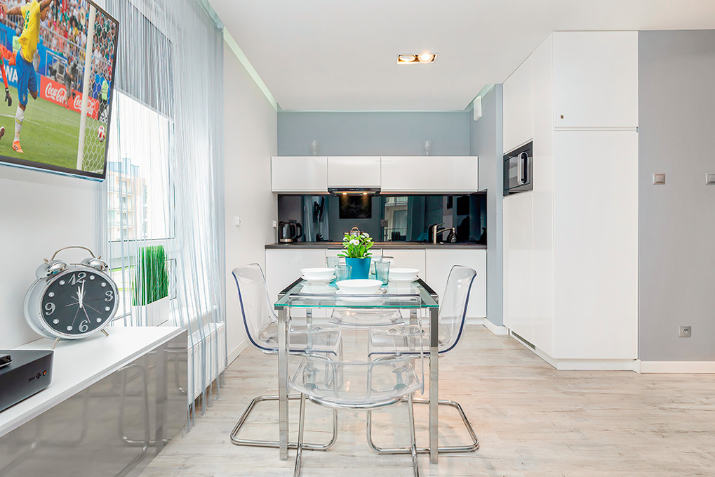 Ort: Ostseebad Kolobrzeg (Kolberg). Gute Lage, Fischereihafen mit Fischmarkt, Restaurants 450 m. Ostseestrand 990 m. Einkaufen 200 m. Öffentliches Hotelhallenbad mit Sauna-Landschaft, Wellnessbereich, Beauty Farm 250 m. Öffentlicher, moderner Sportkomplex mit Schwimmbecken, Rutschen, Sauna-Landschaft, Fußballfeld, Tennisplätzen, Bogenschießstand, überdachtem Kinderspielparadies 900 m. Altstadt mit Mariendom, neugotischem Rathaus 1,7 km. Leuchtturm, Passagierkai mit Ausflugsschiffen, Restaurants 2,2 km