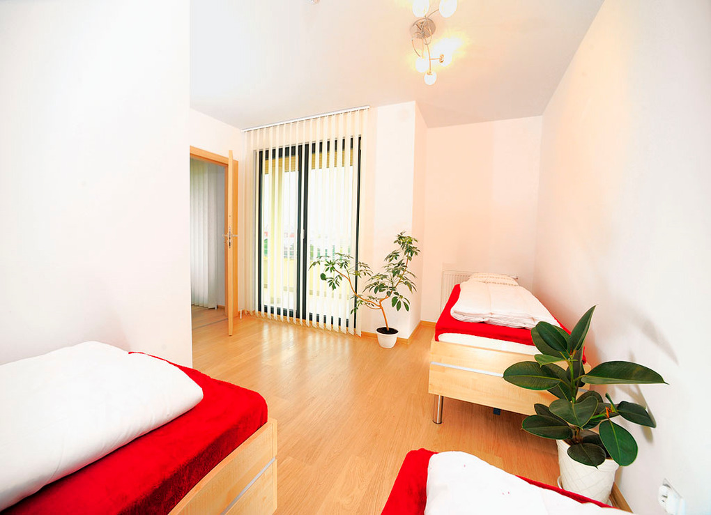 PL 41.13 Wohnung 2-5 Pers.: Niveauvoll eingerichtete 2-Zimmerwohnung mit ca. 50 qm Wohnfläche, 1. Etage. Schöner Wohn-/Essraum mit Sitzgarnitur (Schlafsofa 2 Pers.), Sat-TV, Esstisch, Küchenzeile (2 Pl.-Ceranfeld, Mikrowelle). 3-Bettzimmer. Bad/WC. Balkon mit Sitzmöbeln.