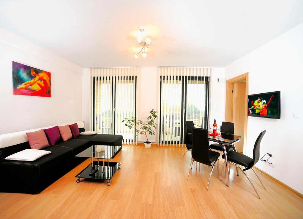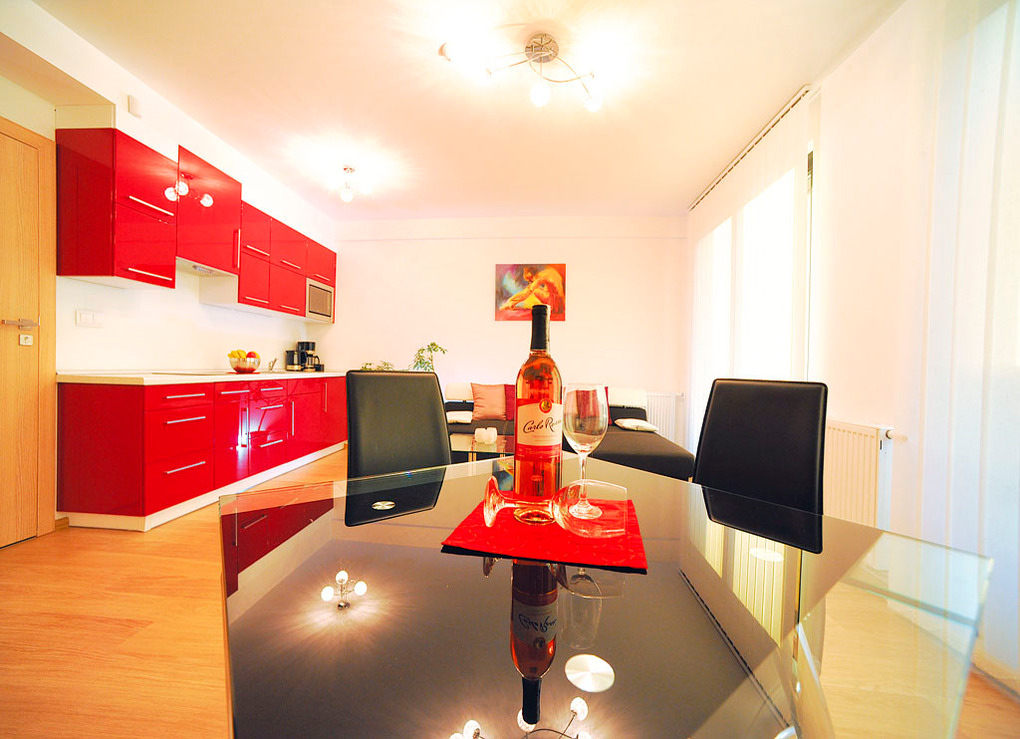Haus: Schöne, moderne Villa mit 4 Ferienwohnungen. Nichtraucher-Wohnungen. Hochwertige, geschmackvolle Einrichtung. Kostenloses Internet über W-Lan. Zentralheizung. Balkone mit Sitzmöbeln. 1 Pkw-Stellplatz/FeWo am Haus.