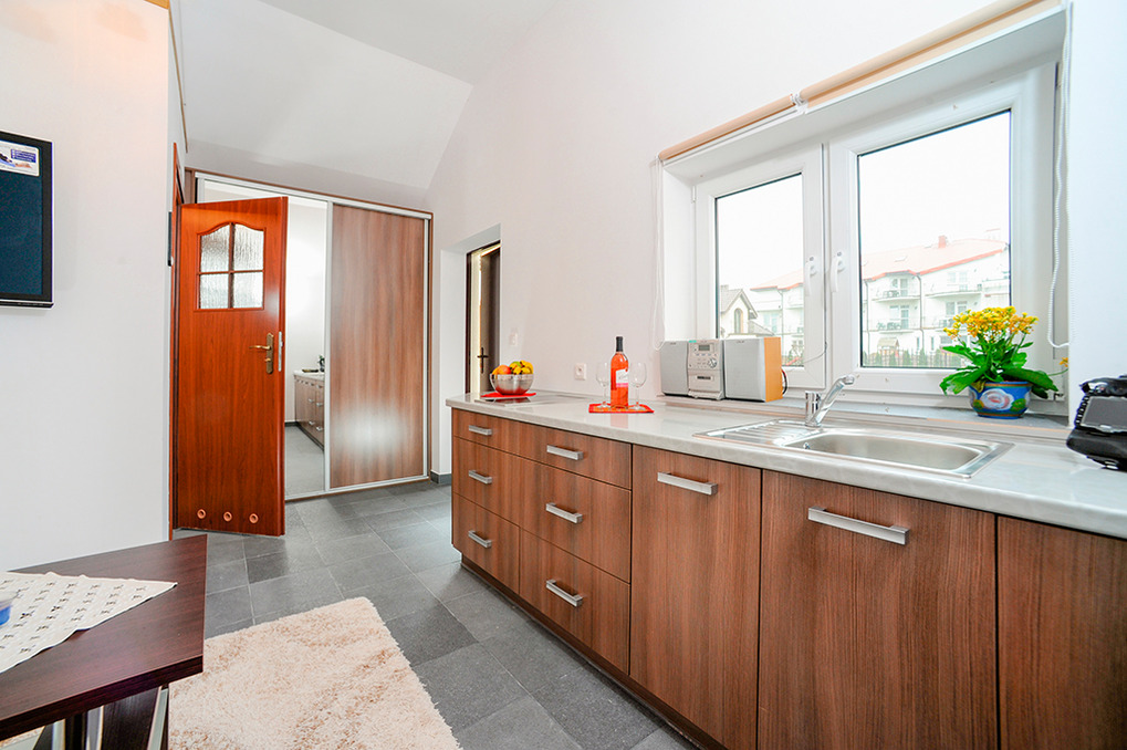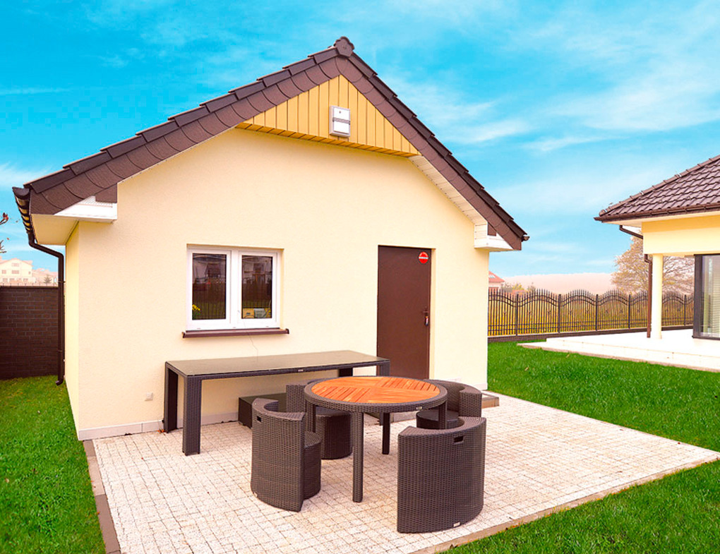 Haus: Kleines, knuffiges Ferienhäuschen neben der Villa PL 41.12-13. Moderne, geschmackvolle Einrichtung. Kostenloses Internet über W-Lan. Zentralheizung. Terrasse mit Sitzmöbeln. Gepflegte Rasenfläche mit gemauerten Grill (gemeinschaftliche Nutzung). 1 Pkw-Stellplatz vor der Anlage.
