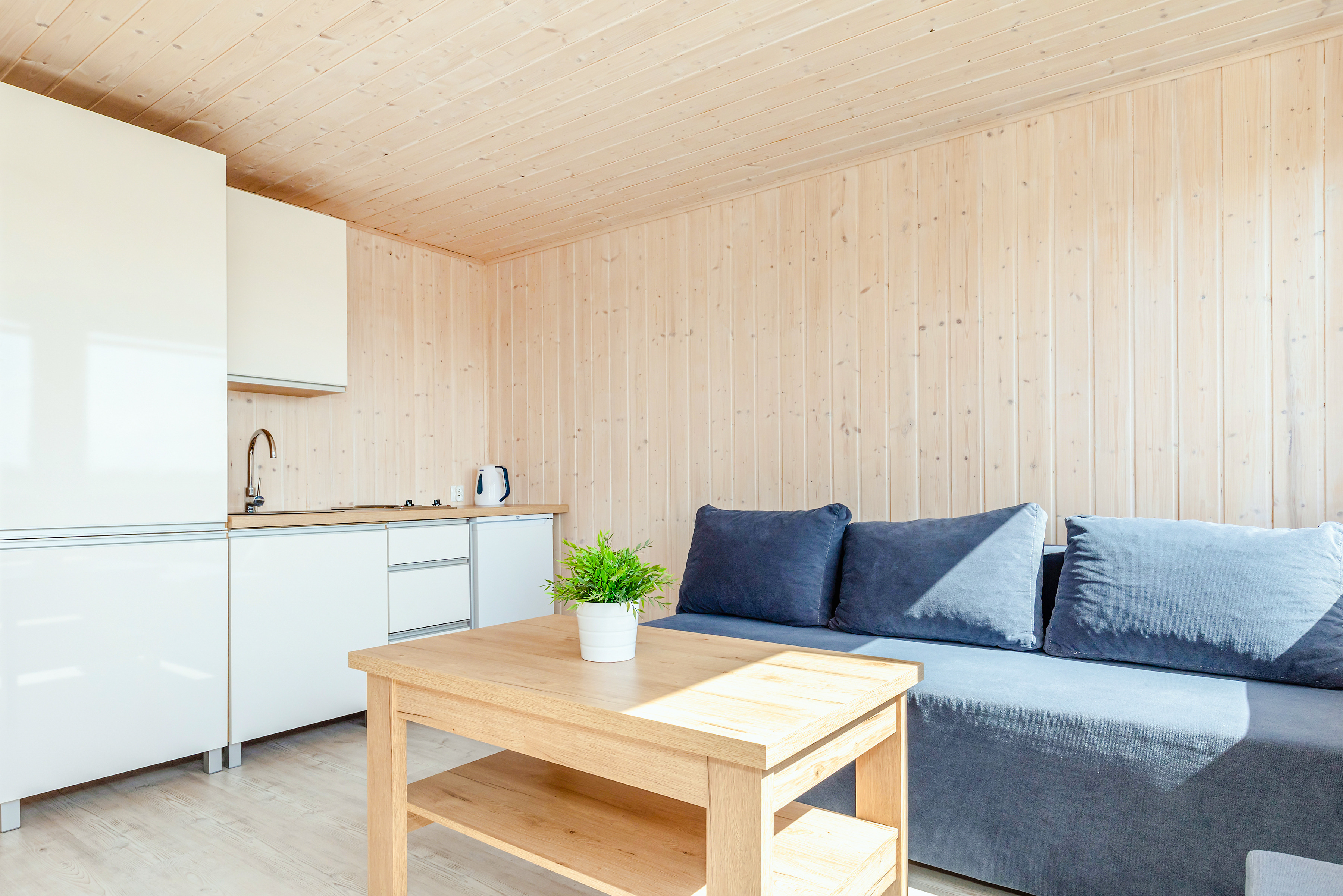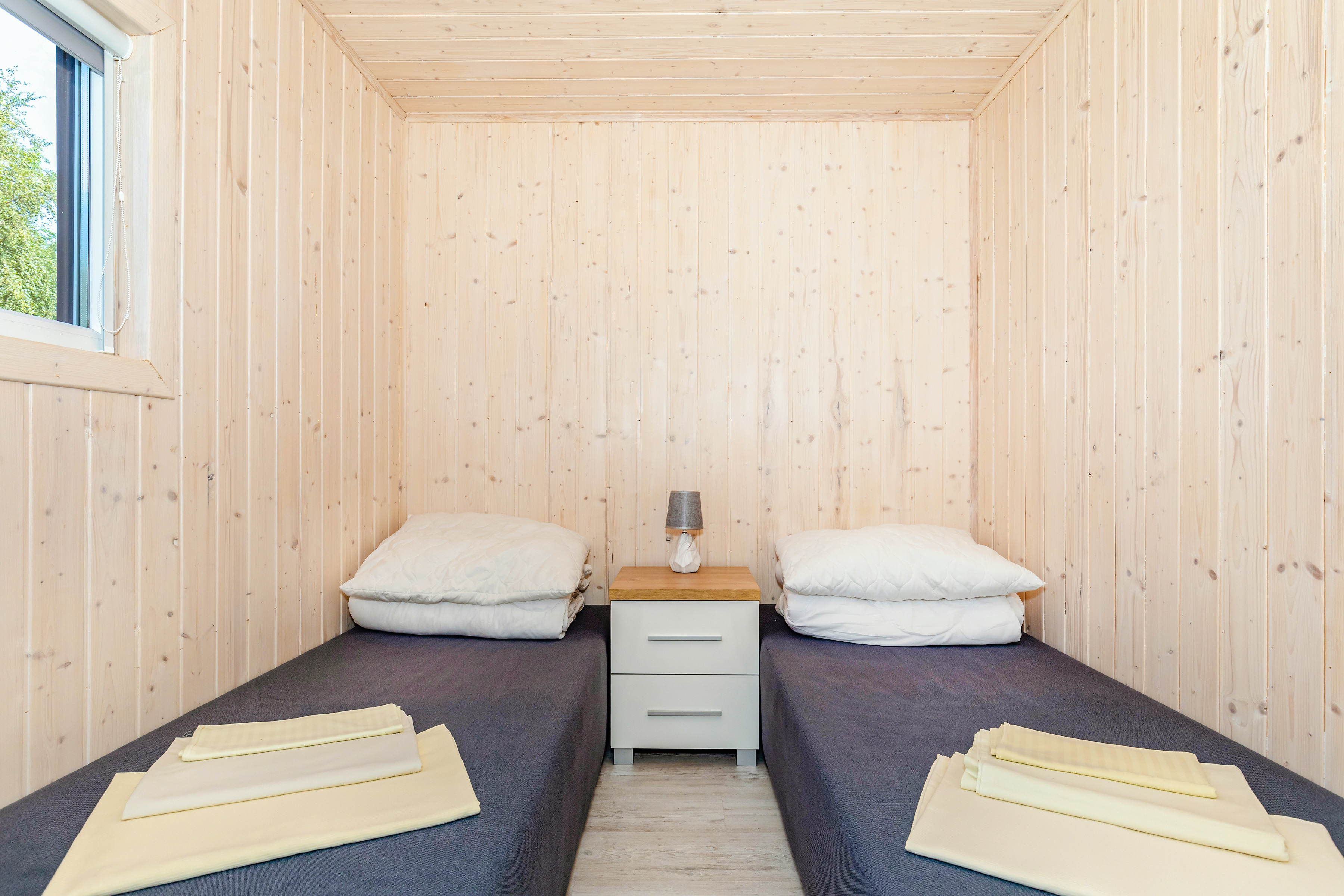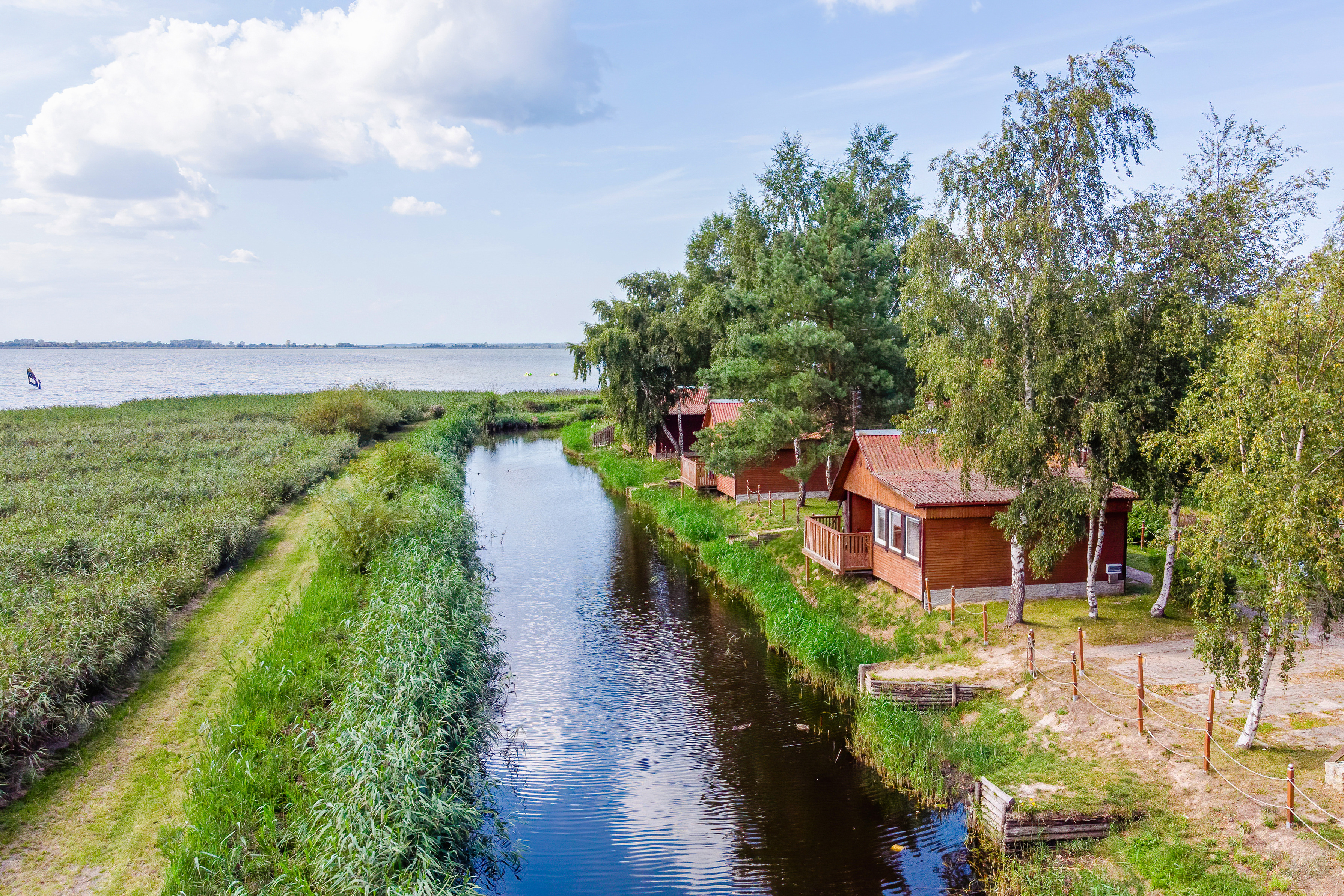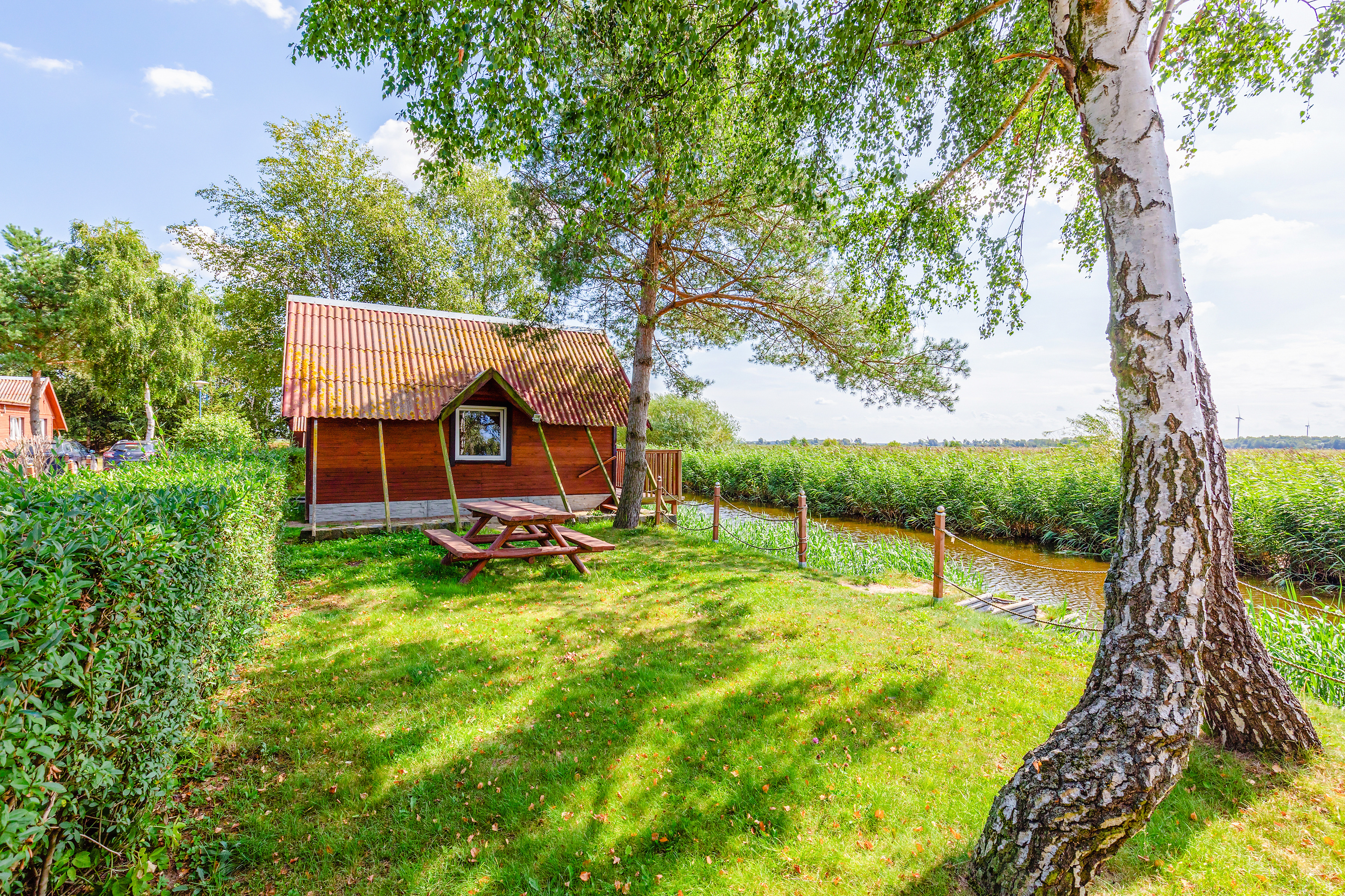 Gemütliche Ferienhäuser in idyllischer Lage am See. Heizung über E-Radiatoren auf Wunsch (nur PL 43.15), Warmwasser über E-Boiler (50 l). Terrasse mit Sitzmöbeln, Wasserblick. 1 Pkw-Stellplatz pro Haus auf dem umzäunten Grundstück (Gebühr).