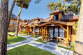 Haus: Kleine Ferienhaussiedlung mit 13 schönen, niveauvollen Holzblockhäusern auf weitläufigem, eingezäunten Grundstück. In der Anlage: Rezeption. Überdachter, beheizter Außenpool (3 x 10 m mit Babybecken, Mai-Sept.). Restaurant, Frühstück, Halbpension, Vollpension auf Wunsch gegen Gebühr (vor Ort buchbar nur Mitte Juni -August). Fahrradverleih (Gebühr). Großer Grillplatz zur gemeinschaftlichen Nutzung. Lagerfeuerstelle. Großer Kinderspielplatz mit Schaukeln, Rutschen, Wippen, Klettergerüst, Sandkasten, Trampolin. Umfangreiche Sportmöglichkeiten: Fußball-, Volleyball-, Basketballfeld. Tischtennis.