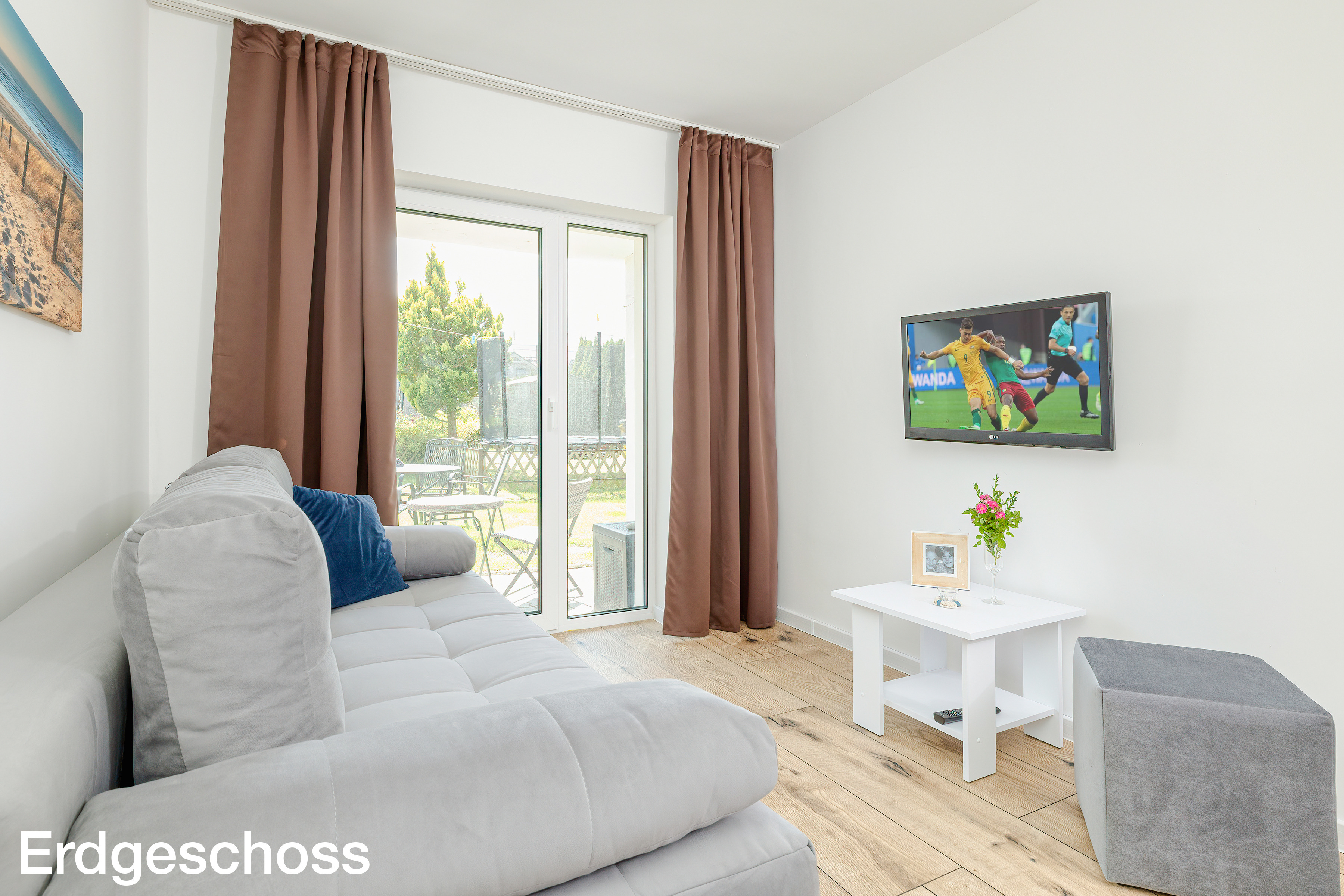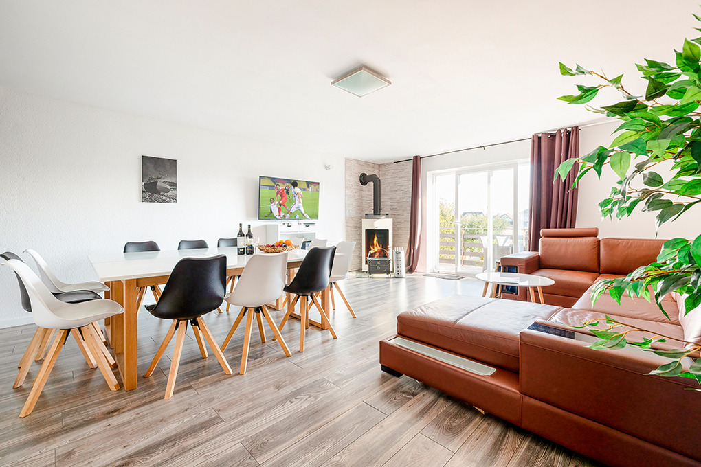 Haus: Komfortable Doppelhaushälfte auf einem großen, umzäunten Rasengrundstück (700 qm) letztmalig 2024 renoviert. Gepflegter Garten mit gemauertem Grill, Gartenhaus, Gartenmöbeln, Klettergerüst, Trampolin. Teilüberdachter Terrasse mit Sitzmöbeln. Gemütliches Ferienhaus mit Kamin, Zentralheizung. Freundlicher Einrichtung. Kostenloses Internet (W-Lan). 3 Pkw-Stellplätze auf dem umzäunten Grundstück im Mietpreis inklusive. Hinweis: Die maximale Belegung darf 12 Personen nicht überschreiten.
