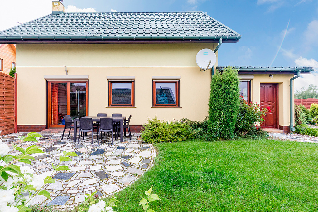 Ort: Sarbinowo. Sehr gute Lage in einer kleinen Ferienhaussiedlung. Ostseestrand 450 m. Ortsmitte 450 m.