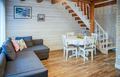 Gemütliche Ferienhäuser mit moderner, freundlicher Einrichtung. Kostenloses Internet (WiFi). Zentralheizung, Warmwasser über E-Boiler (100 l). Terrasse mit Sitzmöbeln, Grill. 1 Pkw-Parkplatz/Ferienhaus auf dem umzäunten Grundstück.