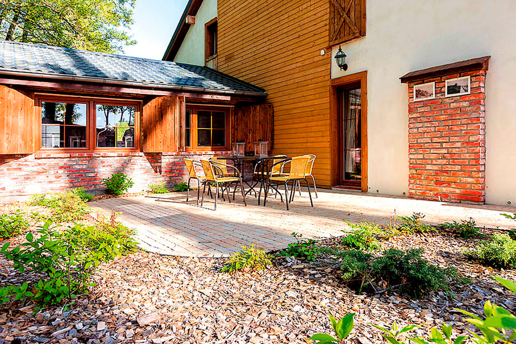 Ort: Sarbinowo. Erstklassige Lage in erster Reihe direkt hinter den Stranddünen und dem kleinen Küstenwald. Ostseestrand nur 90 m. Ortsmitte mit Geschäften 800 m.