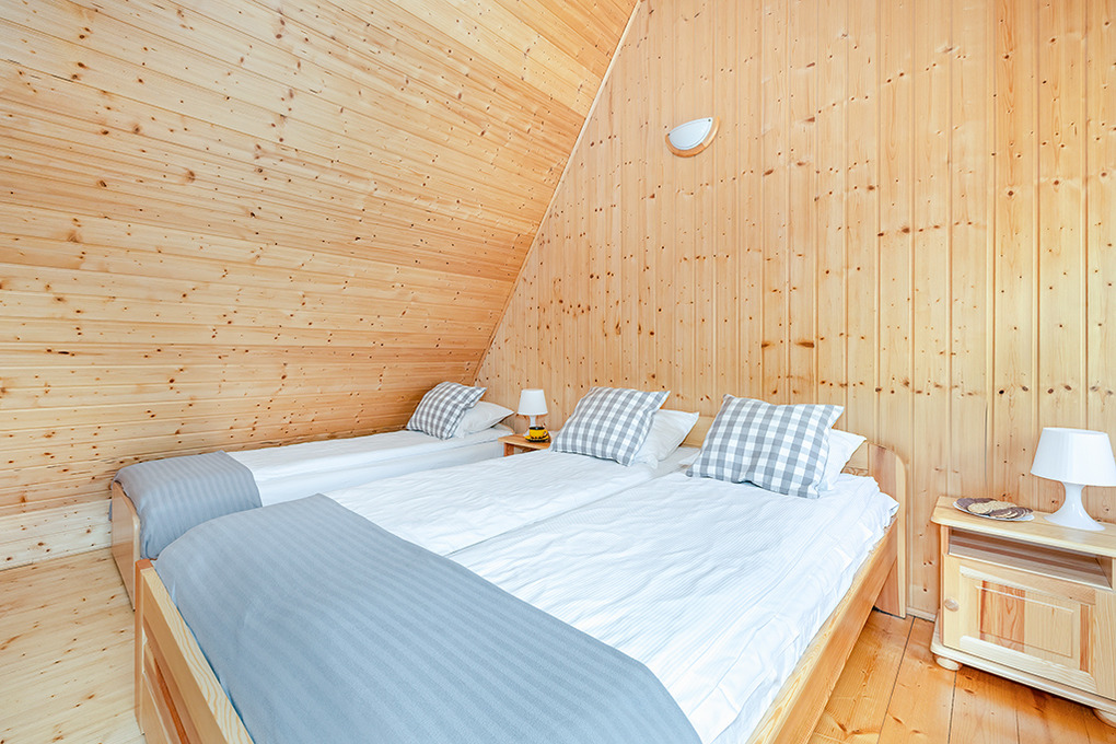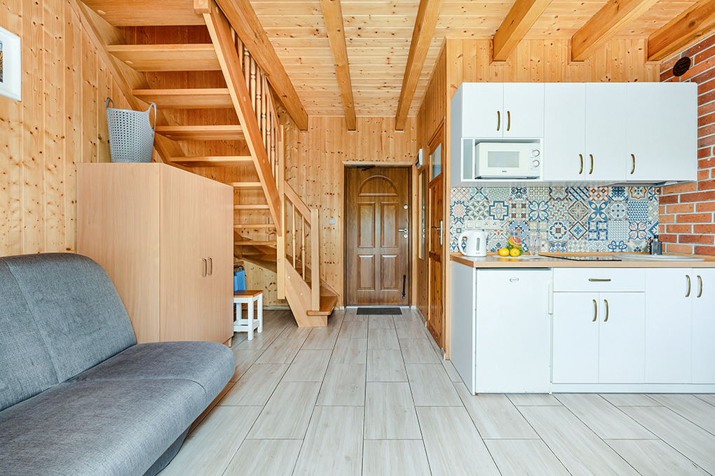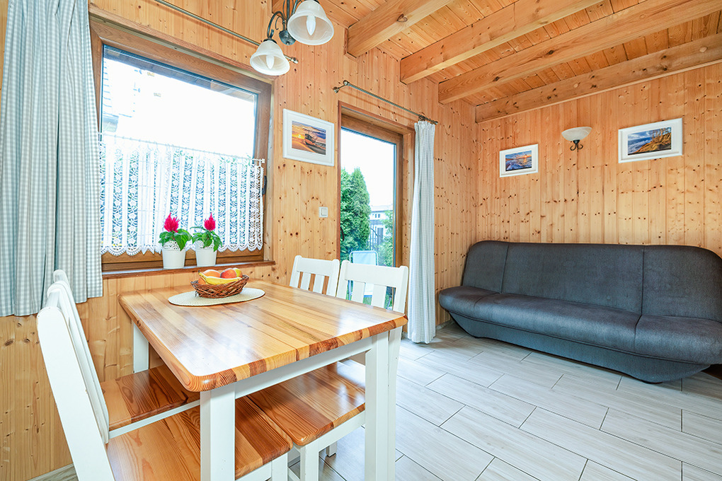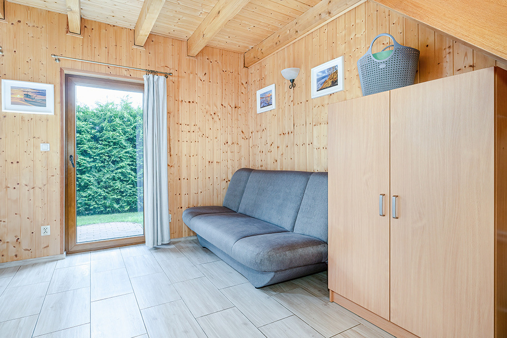 PL 66.10 Ferienhaus 2-6 Pers.: 2-Zimmer-Reihenhaus mit ca. 40 qm Wohnfläche über 2 Etagen. Parterre: Wohn-/Essraum mit Sofa (Ausziehcouch 2 Pers.), SAT-TV (6 dt. Programme), Internet (WLan), Esstisch, Küchenzeile (2 E-Platten Ceranfeld). Bad/WC. 1. Etage: 4-Bettzimmer mit Doppelbett, zwei Einzelbetten. Kleine Sitzecke im Garten.