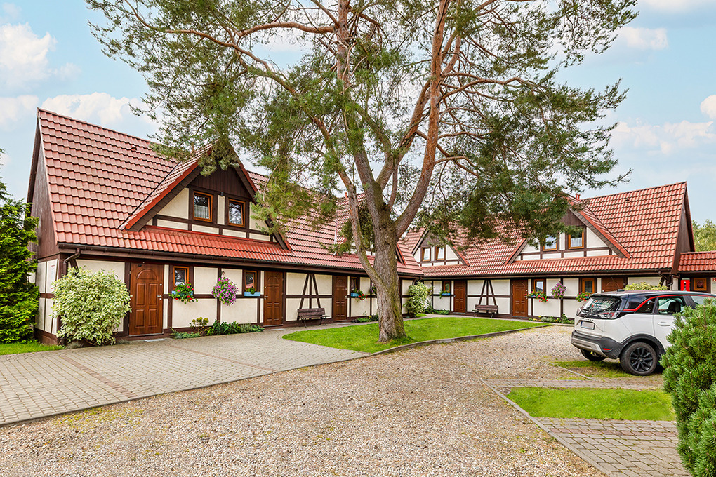 Ort: Dabki (Neuwasser), Ortsteil Bobolin. Schöne, ruhige Lage. Ostseestrand 700 m. Lebensmittelladen 150 m. Hotelhallenbad mit Wellnessbereich, Tennisplatz 200 m. Bukowosee mit Paddelboot-, Surfbrettverleih, Kitesurfing 1,5 km. Pferdegestüt 1,5 km.