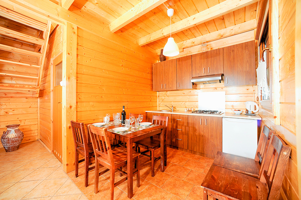 PL 311.1 Ferienhaus 2-8 Pers.: 3-Zimmerhaus mit ca. 55 qm Wohnfläche über 2 Etagen. Parterre: Wohn-/Essraum mit Ecksofa (Ausziehcouch 2 Pers.), Couchtisch, Sat-TV mit dt Programmen, Küchenzeile. Bad/WC. 1. Etage: 3-Bettzimmer mit Doppelbett, Einzelbett. 3-Bettzimmer mit Einzelbetten.