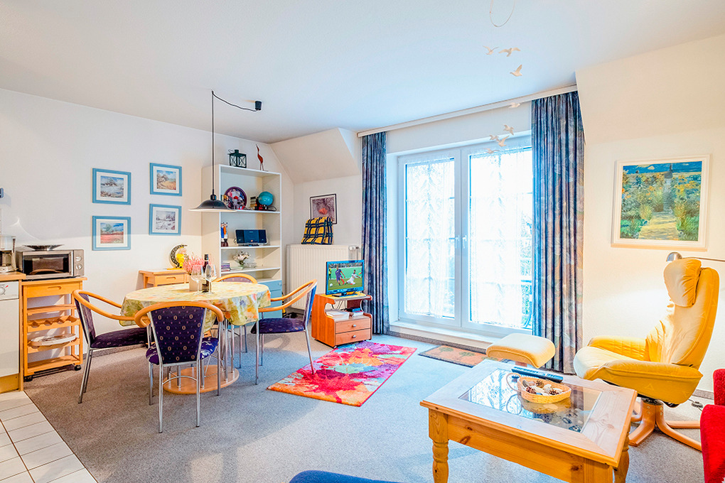 Haus: Schöne, moderne Reihenhäuser mit jeweils 5 Ferienwohnungen. Freundliche, geschmackvolle Einrichtung. Jede Fewo mit Sat-TV, Spülmaschine, Waschmaschine. Zentralheizung. Größtenteils mit Terrasse oder Balkon. 1 Pkw-Stellplatz /Fewo.