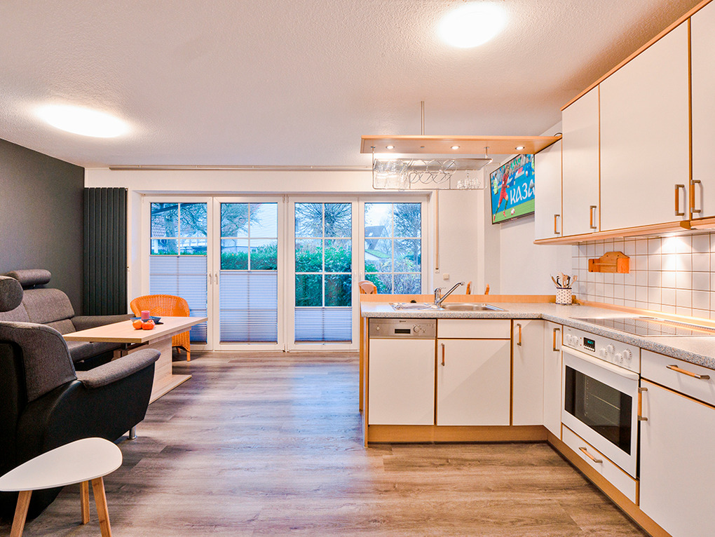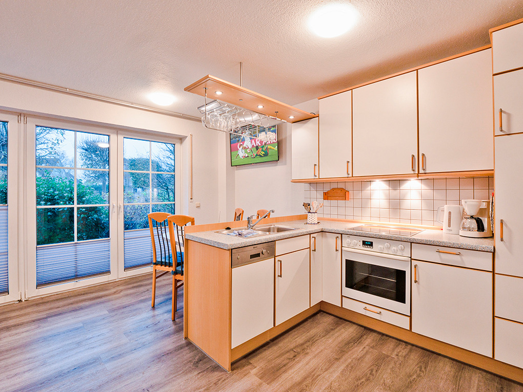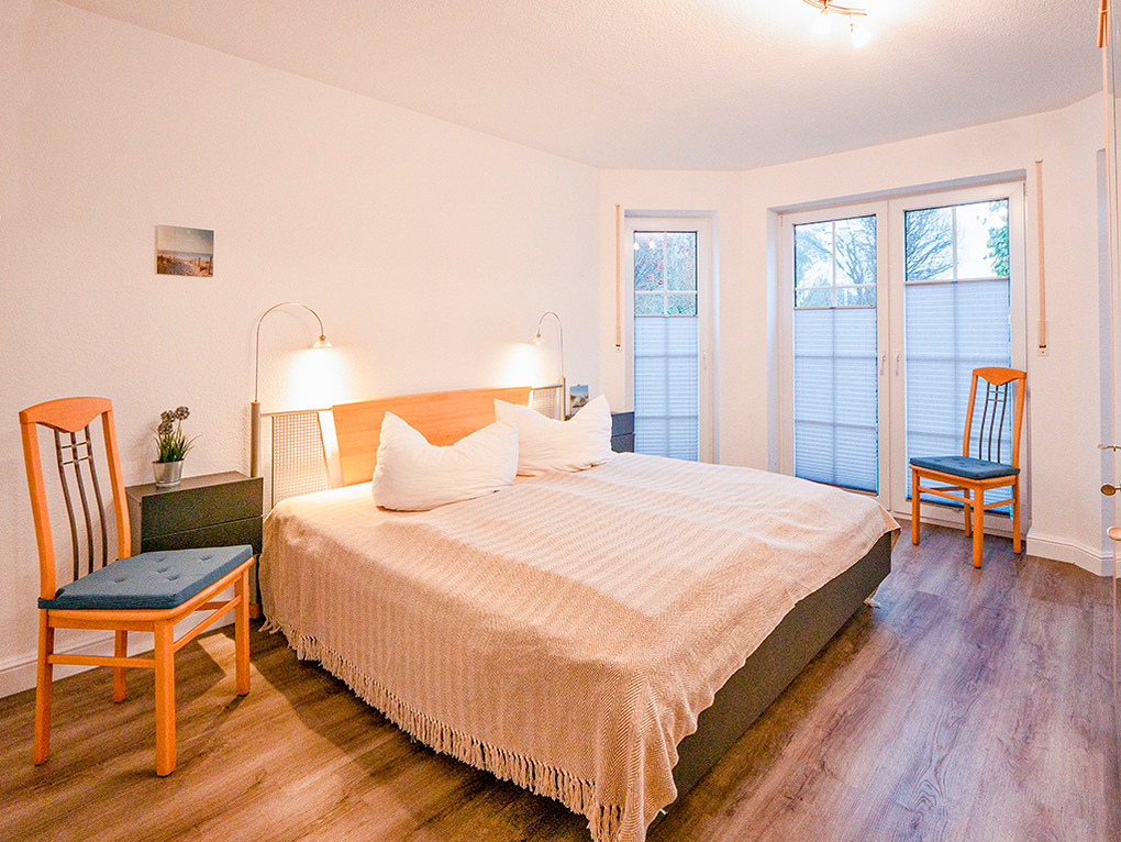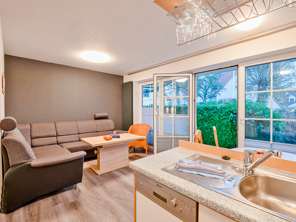 D 67.3026 Wohnung 1-5 Pers.: 3-Zimmerwohnung mit 60 qm Wohnfläche, Parterre. 2022 neu möbliert. Wohn-/Essraum mit Couchgarnitur (Ausziehcouch 1 Pers.), Sat-TV, DVD-Player, Esstisch, Küchenzeile (Backofen, Spülmaschine). Doppelzimmer. 2-Bettzimmer (Etagenbett). Bad: Du, Wb, WC, Waschmaschine. Terrasse.
