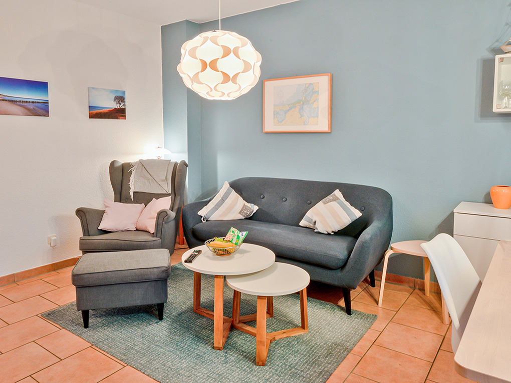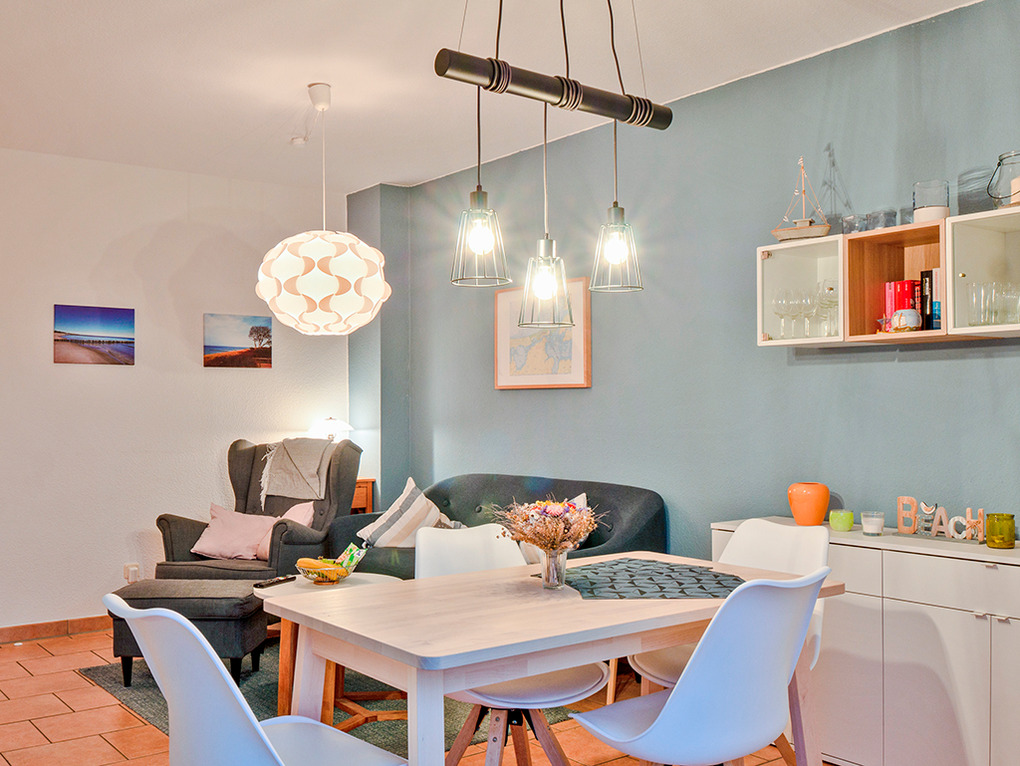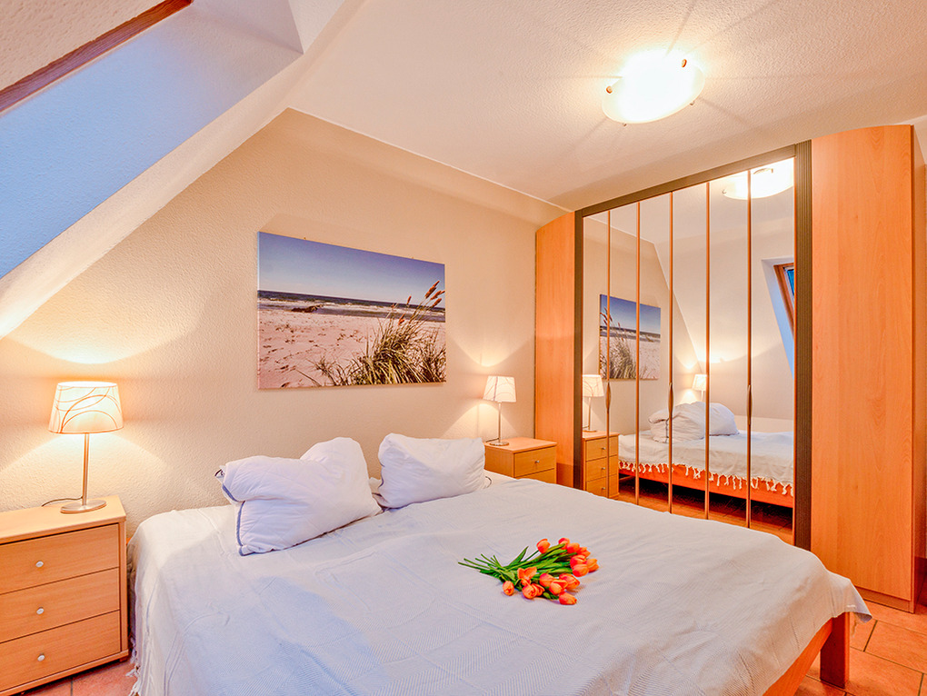 D 67.3133 Wohnung 1-4 Pers.: 3-Zimmerwohnung mit 55 qm Wohnfläche, 1. Etage. Wohn-/Essraum mit Couchgarnitur, Sat-TV, Esstisch, Küchenzeile (Backofen, Spülmaschine). Doppelzimmer. 2-Bettzimmer mit Etagenbett. Bad: Du, Wb, WC, Waschmaschine, Trockner. Balkon mit Sitzmöbeln.