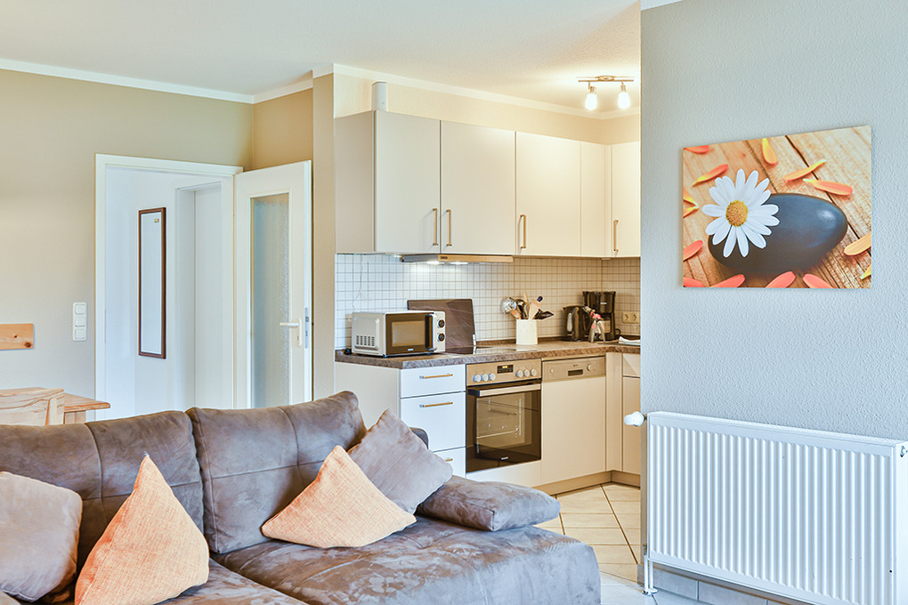 D 67.3408 Wohnung 1-4 Pers.: 3-Zimmer-Nichtraucherwohnung in 2024 neu möbliert, 68 qm Wohnfläche, Parterre. Wohn-/Essraum mit Sitzgarnitur, Sat-TV, Esstisch, moderner Küchenzeile (Backofen, Mikrowelle, Spülmaschine). Doppelzimmer. 2-Bettzimmer mit Etagenbett. Bad: Du, Wb, WC, Waschmaschine. Terrasse.