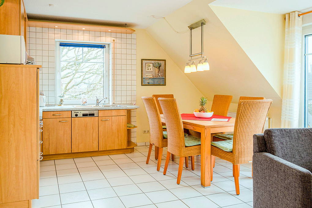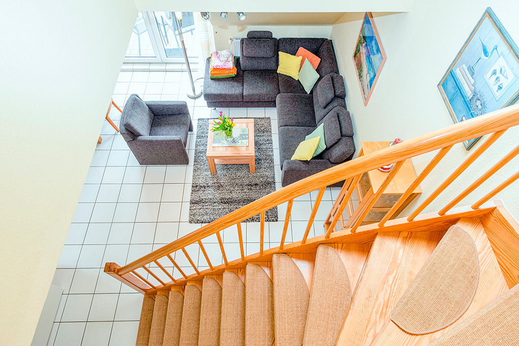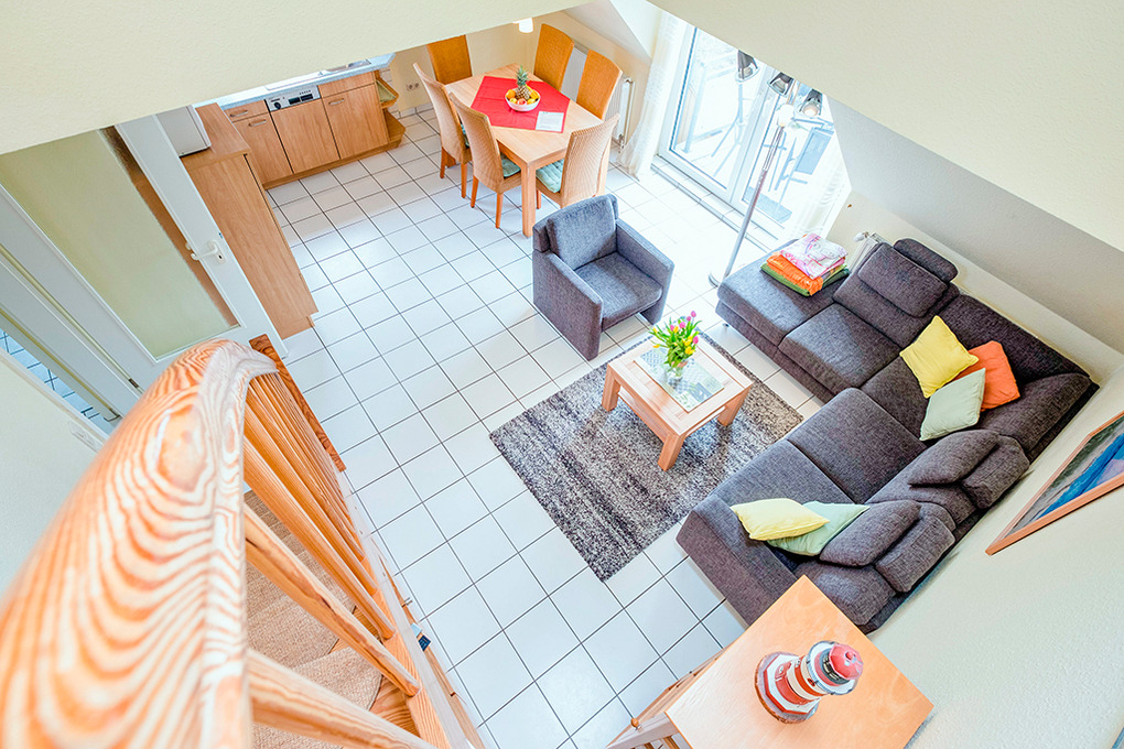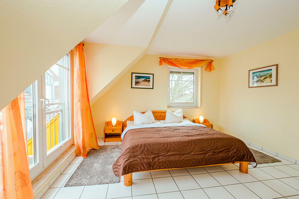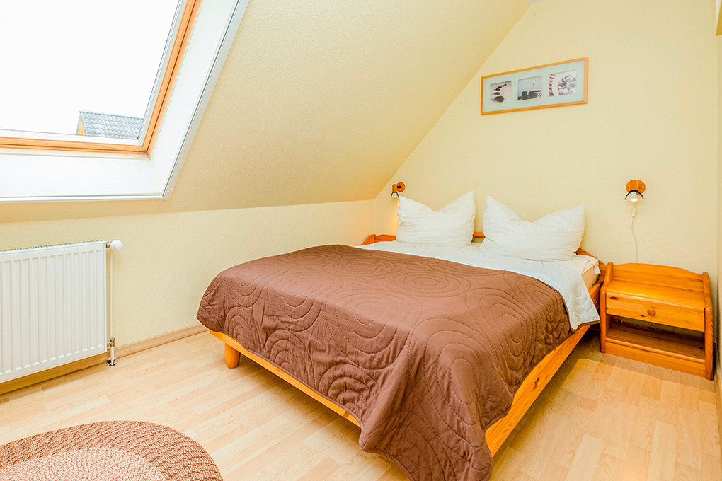 D 67.3518 Wohnung 1-6 Pers.: 4-Zimmerwohnung mit 75 qm Wohnfläche über 2 Etagen, 1. Etage. Wohn-/Essraum mit Sitzgarnitur, Sat-TV, Esstisch, Küchenzeile (Backofen, Mikrowelle, Spülmaschine). Doppelzimmer. Bad: Du, Wb, WC, Waschmaschine. Treppe ins ausgebaute Dachgeschoss: französisches Doppelzimmer mit Sat-TV. 2-Bettzimmer (Bettengröße 190cm). Bad/WC. Balkon.