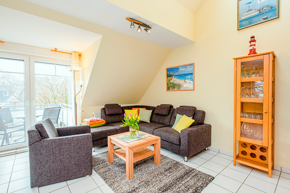 Haus: Drei Apartmenthäuser mit großzügigen, komfortablen Ferienwohnungen auf parkähnlich angelegtem Grundstück. Geschmackvolle, freundliche Einrichtung. Jede Fewo mit Spülmaschine, Waschmaschine. Zentralheizung. Terrasse oder Balkon jeweils mit Sitzmöbeln. Kostenloser Internetzugang über W-Lan (in Abhängigkeit der ortsüblichen Netzverfügbarkeit). Gemeinschaftlicher Garten mit Rasenfläche. 1 Pkw-Stellplatz/Fewo.