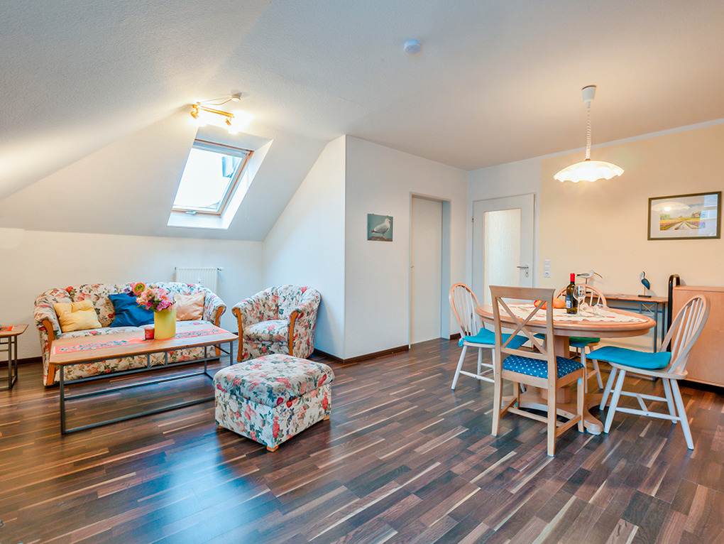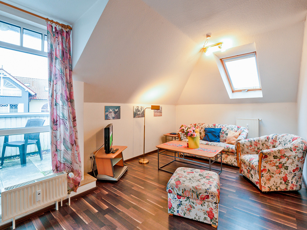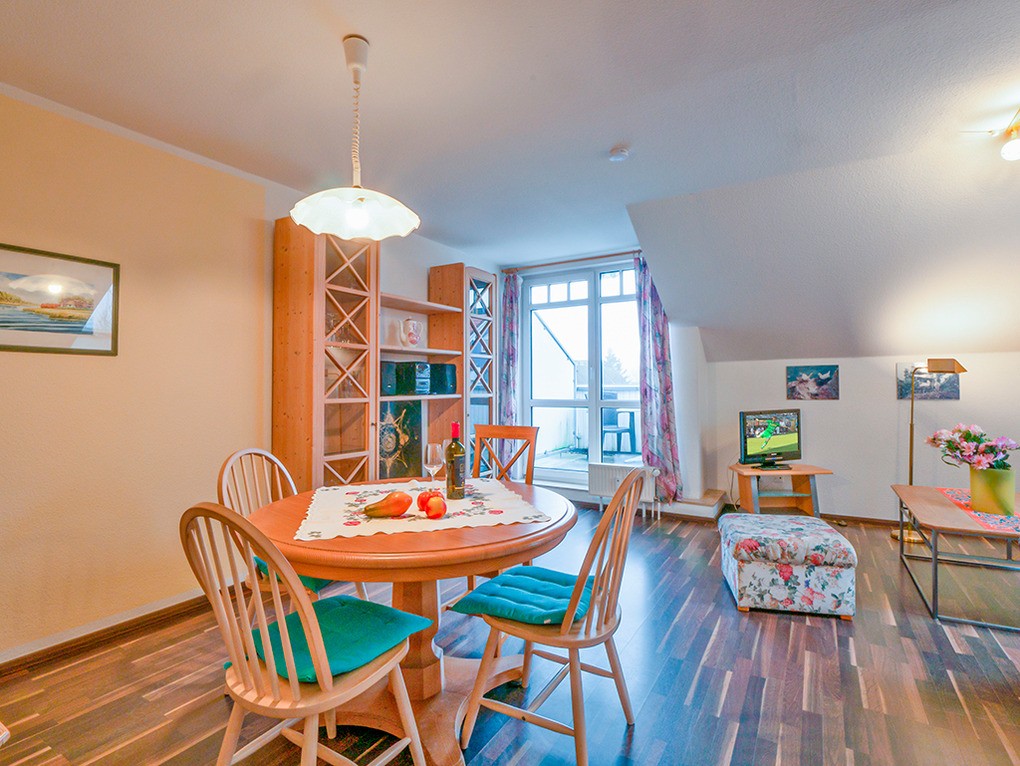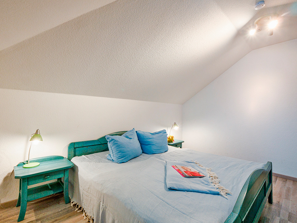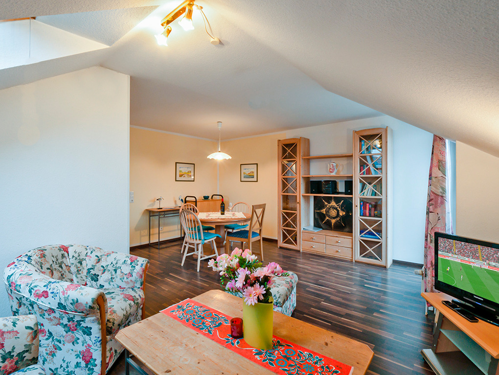 D 67.5123 Wohnung 1-4 Pers.: 2 ½-Zimmerwohnung mit ca. 50 qm Wohnfläche. Wohn-/Essraum mit Couchgarnitur (Ausziehcouch 2 Pers.), Sat-TV, Esstisch. Separate Küche mit Küchenzeile (Backofen, Mikrowelle, Spülmaschine). Doppelzimmer. Bad/WC. Balkon mit Sitzmöbeln.