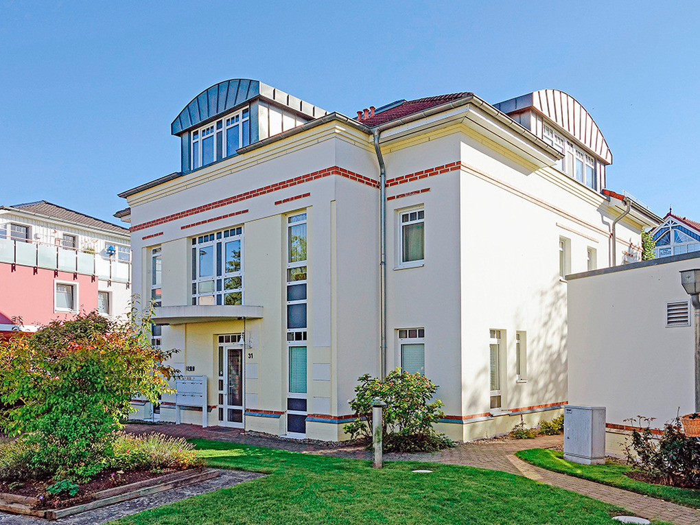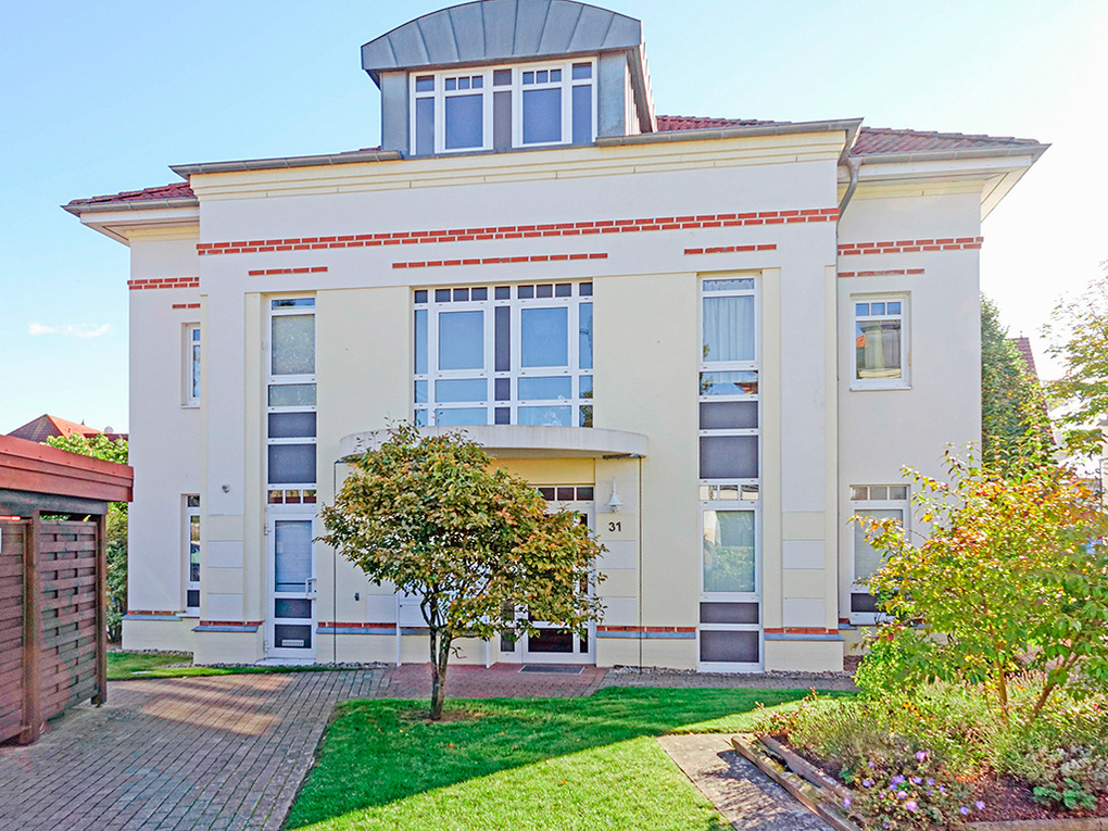 Haus: Schöne, neu erbaute Villa mit komfortablen Ferienwohnungen. Geschäftszeile im Parterre. Geschmackvolle, ansprechende Möblierung. Zentralheizung. Im Haus: Münz-Waschmaschine. Fahrradschuppen. 1 Pkw-Stellplatz/Fewo. Nichtraucherwohnungen.