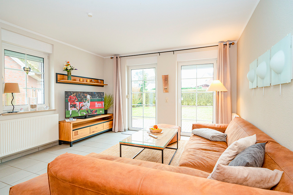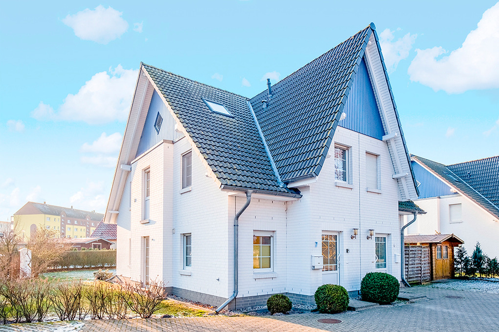 Haus: 2 komfortable Doppelhäuser, jede Haushälfte mit großen Platzangebot. Nichtraucherhäuser. 3 Schlafräume, 2 Bäder. Moderne, geschmackvolle Einrichtung. Kostenlosem Internetzugang über W-LAN. Zentralheizung. Terrasse mit Sitzmöbeln. Garten mit Rasenfläche. Fahrradschuppen. 2 Pkw-Stellplätze pro Haushälfte.