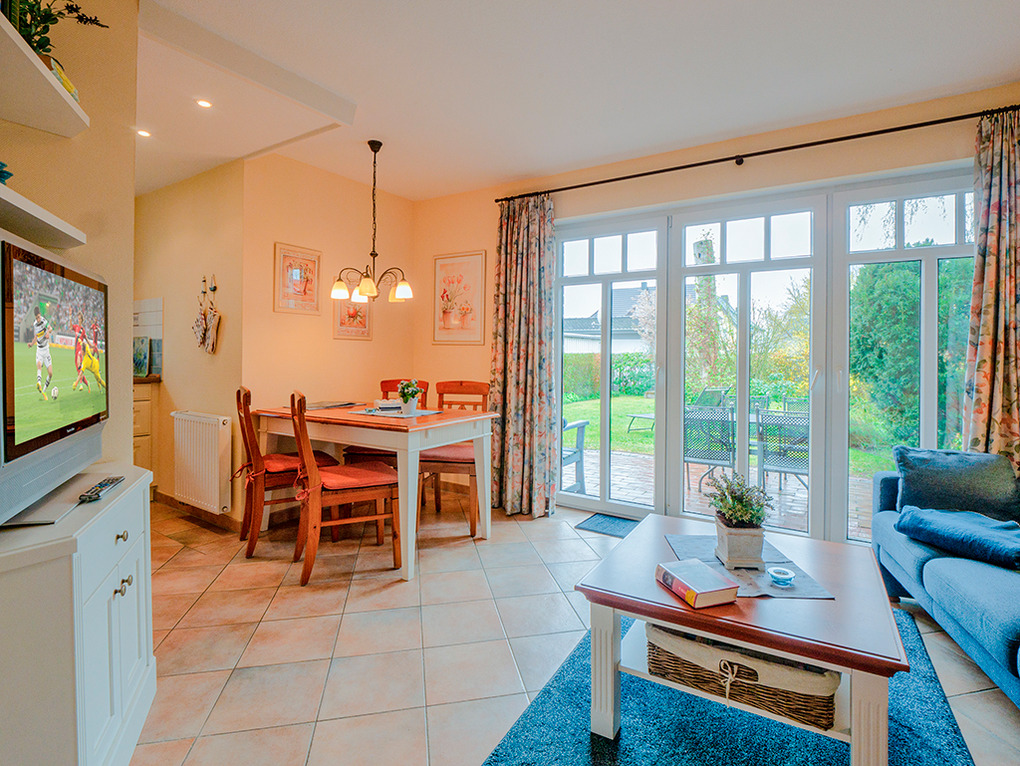D 67.9501 Wohnung 1-4 Pers.: 3-Zimmerwohnung mit 50 qm Wohnfläche, Parterre. Wohn-/Essraum mit Kaminofen, gemütlicher Couchgarnitur, Smart-TV, Esstisch, Küchenzeile (Backofen, Mikrowelle, Spülmaschine). 2 Doppelzimmer, eins davon mit franz. Bett. Bad/WC. Zusätzliches separates WC. Terrasse mit Sitzmöbeln, Grill, anschließend großer Garten (200 qm).