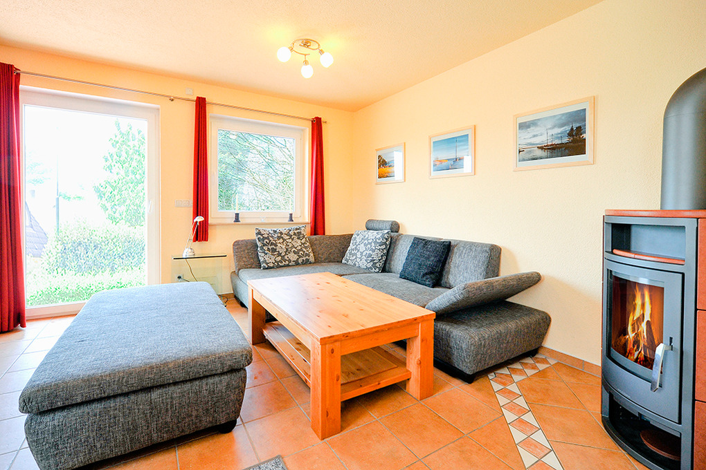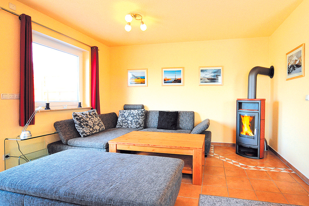 Haus: Komfortables Doppelhaus mit Kaminofen, 2010 neu erbaut. Gehobene Ausstattung, geschmackvolle Möblierung. Nichtraucherhaus. Internetzugang über W-Lan (Gebühr). Waschmaschine. Zentralheizung, Fußbodenheizung. Terrasse mit Sitzmöbeln. Gemeinschaftlicher Garten mit Rasenfläche. Fahrradschuppen. 1 Pkw-Stellplatz.