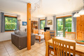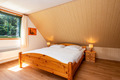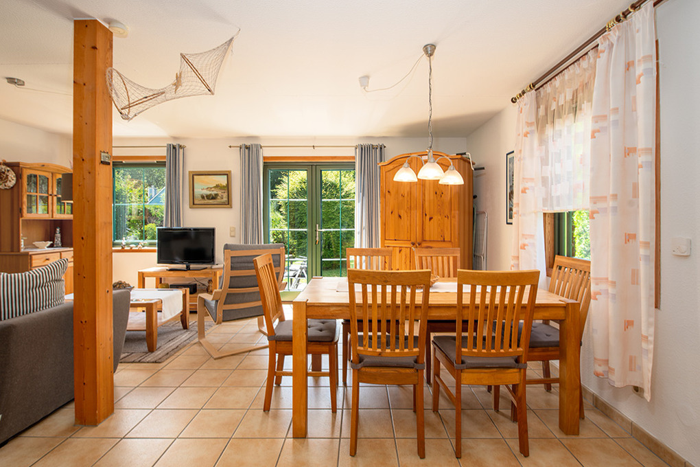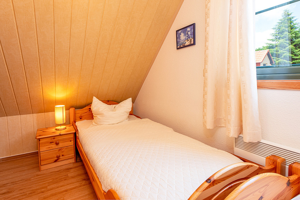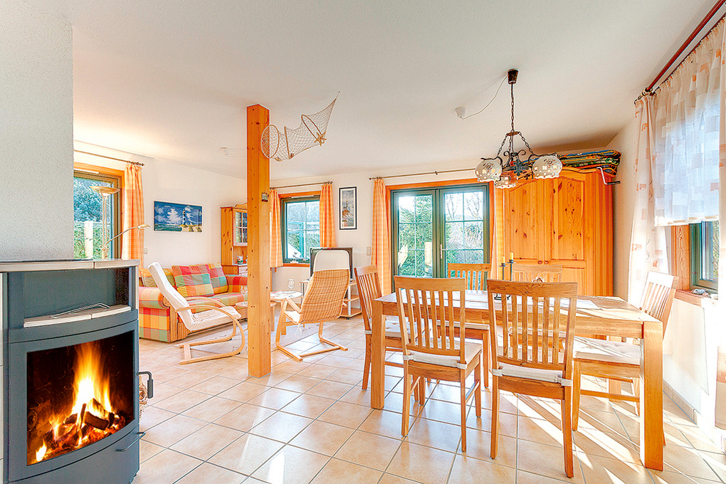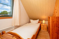 D 90.78 Ferienhaus 2-4 Pers.: 3-Zimmerhaus mit 70 qm Wohnfläche über 2 Etagen (Nichtraucherhaus). Heller, freundlicher Wohn-/Essraum mit Kaminofen, Sitzgarnitur, Sat-TV, Stereoanlage, moderner Küchenzeile (Backofen, Spülmaschine). Bad/WC. Steile Treppe in die 1. Etage (leichte Dachschräge): Doppelzimmer. 2-Bettzimmer.