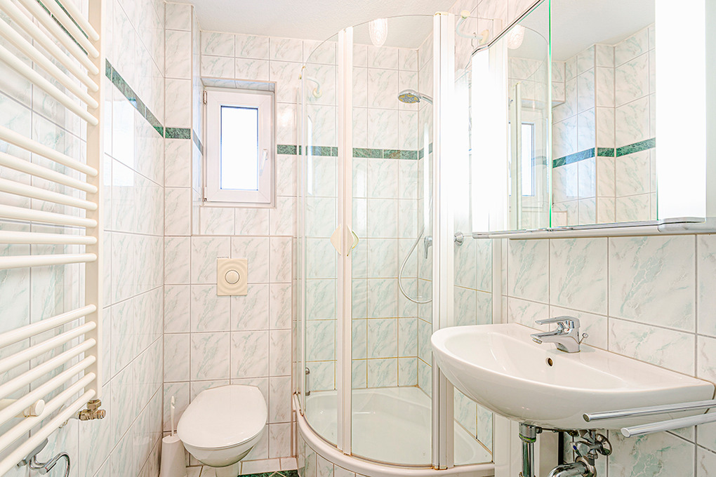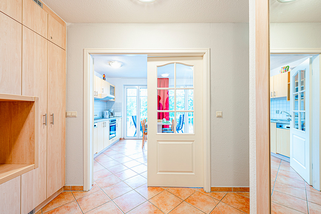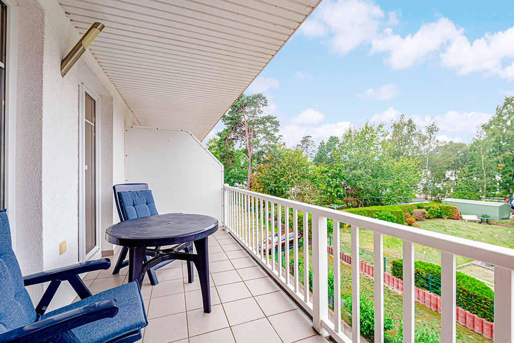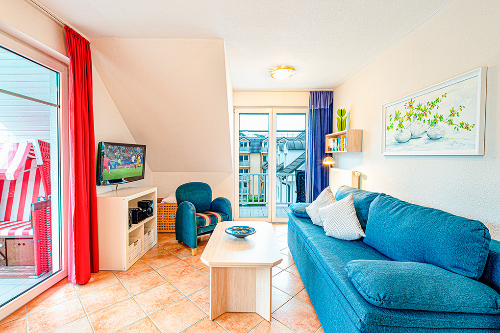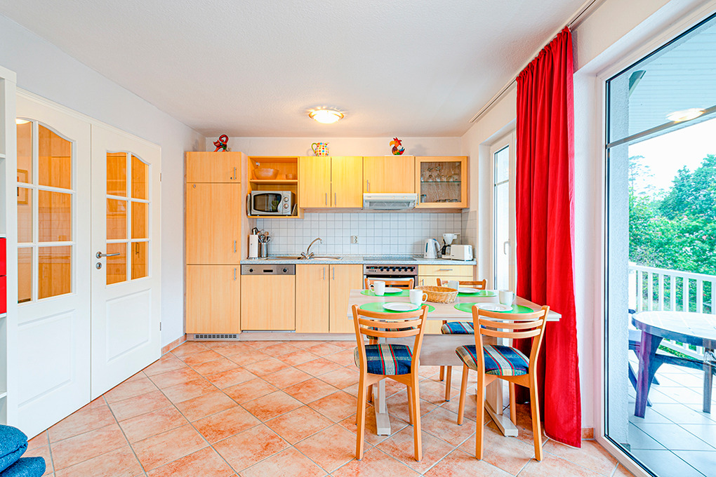 D 92.15A Wohnung 2 Pers.: Freundliche 2-Zimmerwohnung mit 51 qm Wohnfläche, 2. Etage Wohn-/Essraum mit Couchgarnitur, Sat-TV, Radio, Esstisch, Küchenzeile (Backofen, Mikrowelle, Spülmaschine). Doppelzimmer. Bad/WC. 2 Balkone mit Sitzmöbeln.
