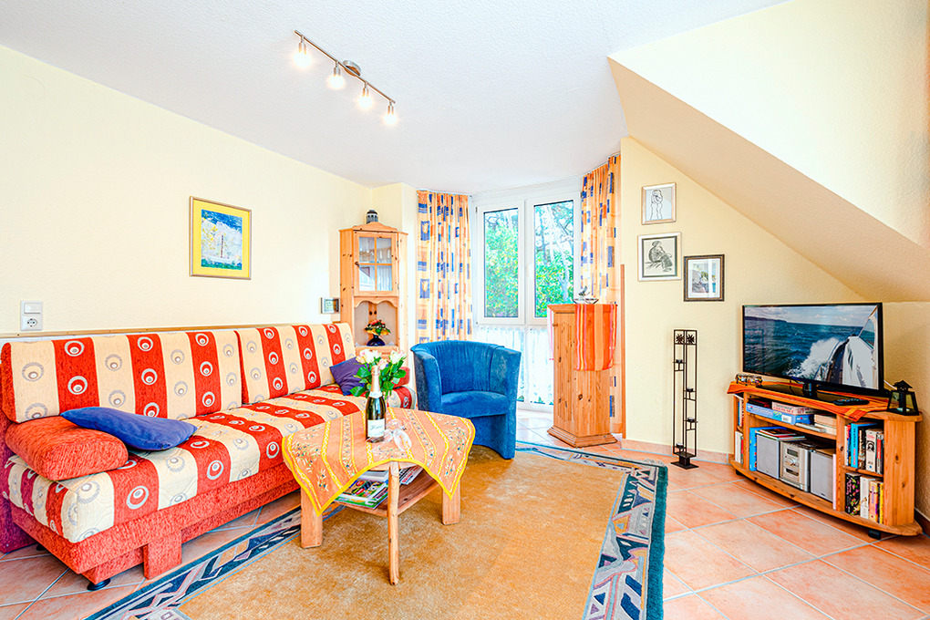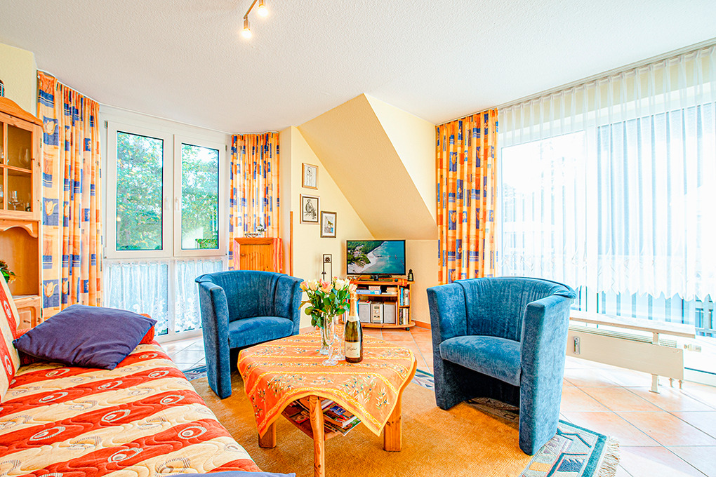 Haus: Schönes Apartmenthaus direkt am Waldrand. Fahrradkeller, Aufzug im Haus. Zentralheizung. Die Wohnungen sind modern und geschmackvoll eingerichtet, alle mit Sat-TV, kostenlosem Internetzugang (W-Lan), Balkon (Sitzmöbel ). 1 Tiefgaragen-Stellplatz/Fewo.