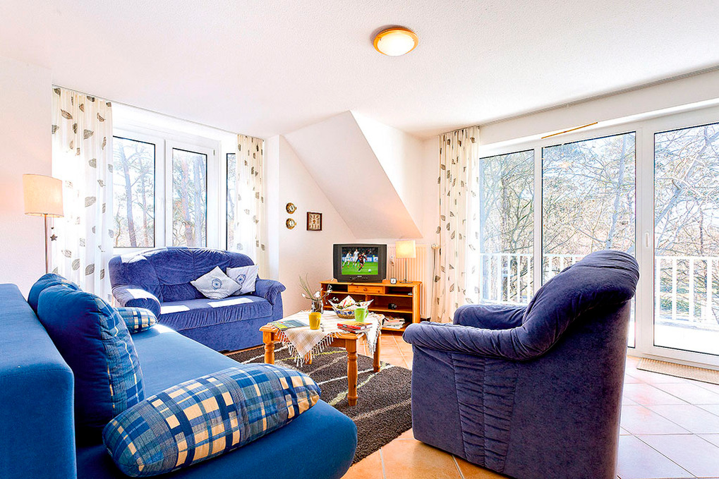Haus: Schönes Apartmenthaus direkt am Waldrand. Fahrradkeller, Aufzug im Haus. Zentralheizung. Die Wohnungen sind modern und geschmackvoll eingerichtet, alle mit Sat-TV, kostenlosem Internetzugang (W-Lan), Balkon (Sitzmöbel ). 1 Tiefgaragen-Stellplatz/Fewo.