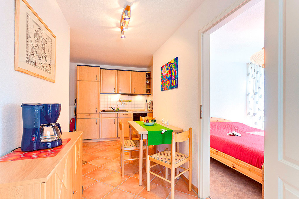 D 92.31 Wohnung 2-4 Pers.: Freundliche 2-Zimmerwohnung, 48 qm Wohnfläche. Wohn-/Schlafraum mit Couchgarnitur (Schlafcouch 2 Pers.). Küche mit Esstisch, moderner Küchenzeile (Backofen, Spülmaschine). Doppelzimmer. Bad/WC. Balkon.