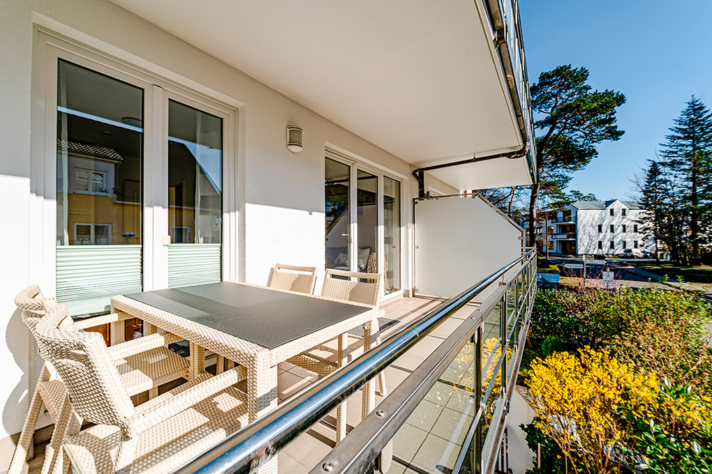 Haus: Schönes Apartmenthaus im Stil der Bäderarchitektur. Kostenloser Internetzugang über W-Lan. Zentralheizung. Balkon (Sitzmöbel). Aufzug im Haus. 1 Pkw-Stellplatz/Fewo.