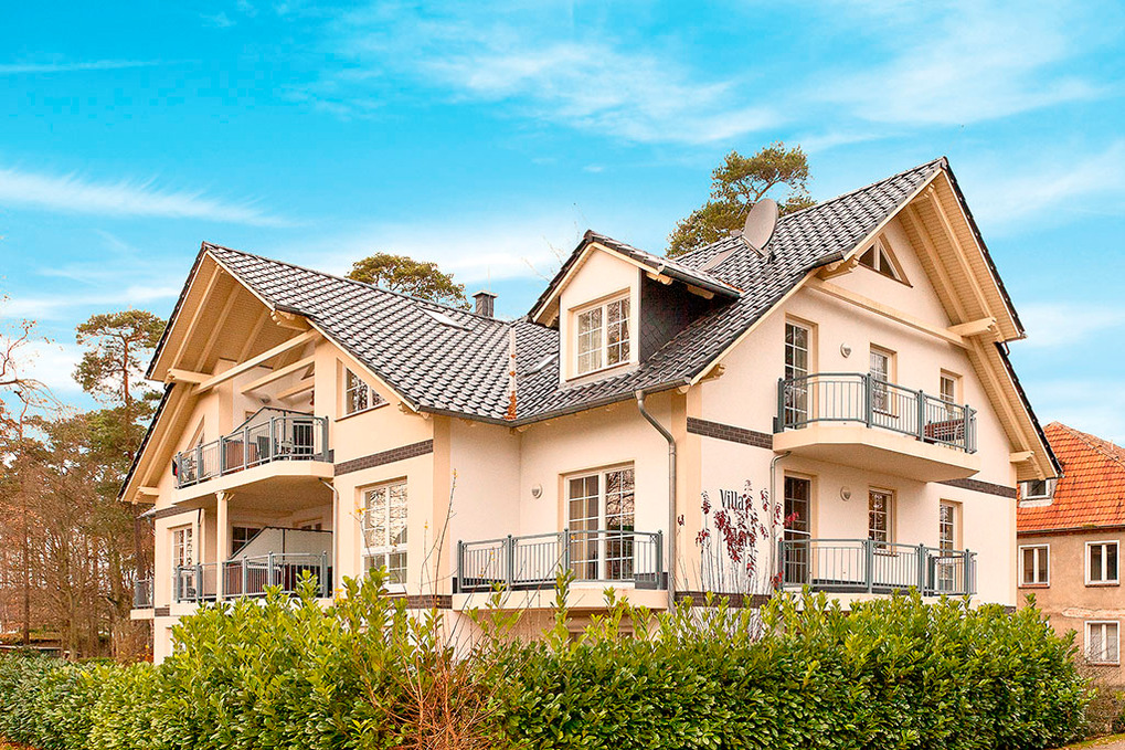 Haus: Modernes Apartmenthaus. Komfortable, geschmackvolle Ferienwohnungen, Sat-TV, überdachter Balkon (Sitzmöbel). Zentralheizung. Gartenhaus für Fahrräder. 1 Pkw-Stellplatz/Fewo.
