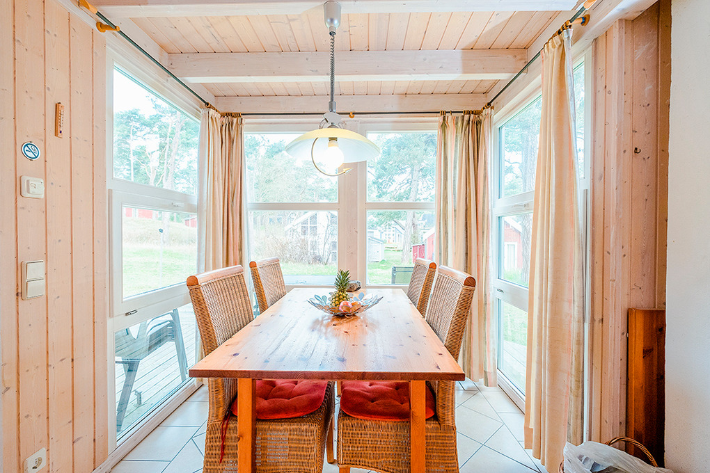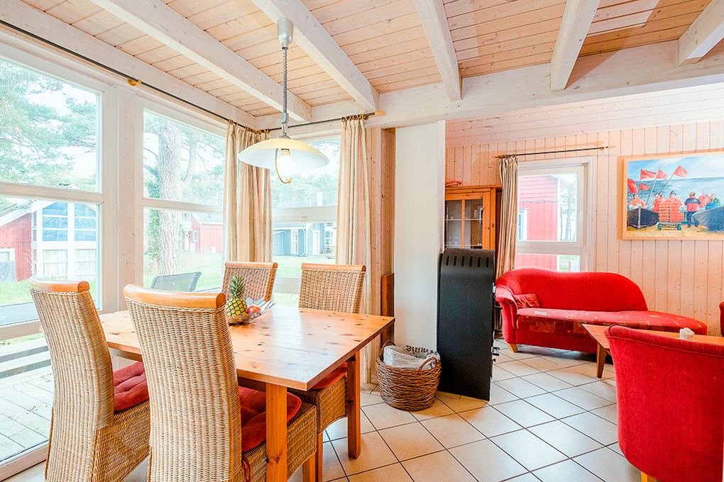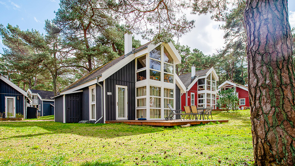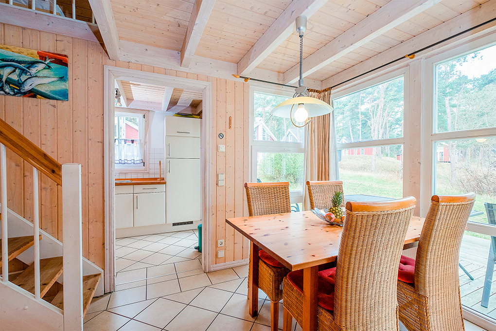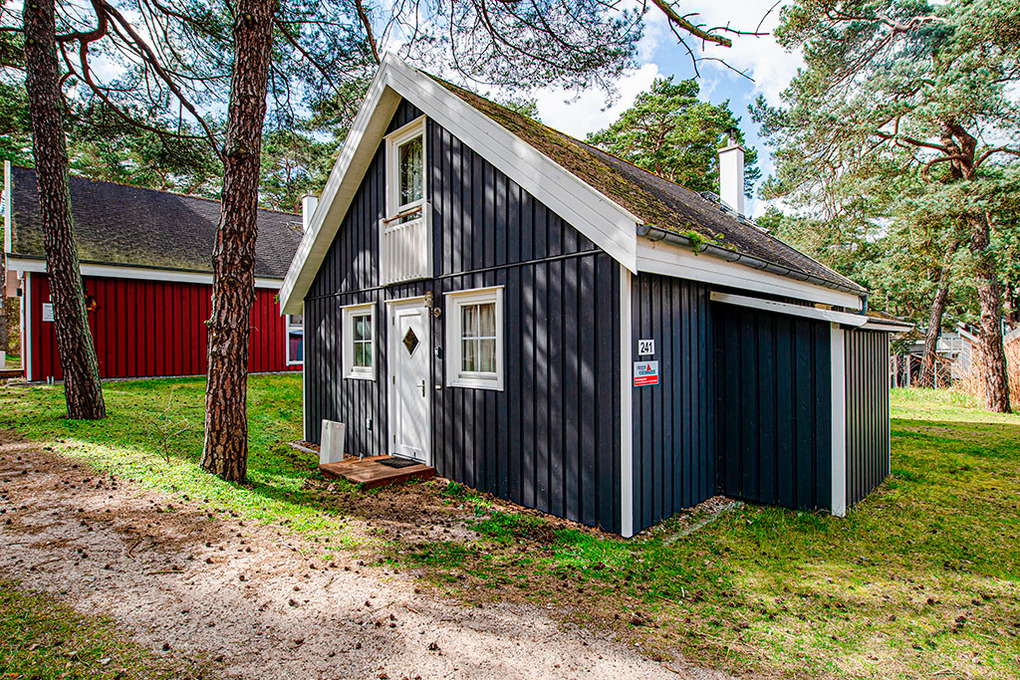 Ort: Ostseebad Baabe. Erstklassige Lage in einer Ferienhaussiedlung auf einem naturbelassenen Grundstück mit lichtem Wald direkt hinter den Stranddünen. Ostseestrand 120 m. Ortsmitte mit Restaurants, Geschäften 1600 m.