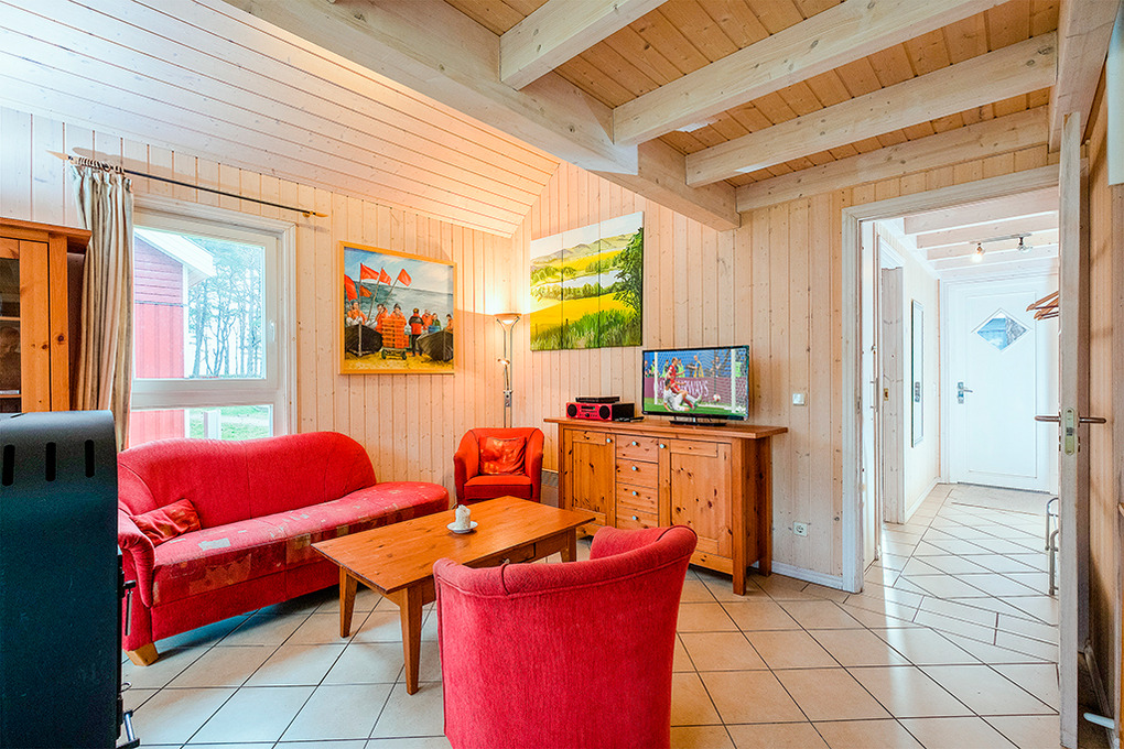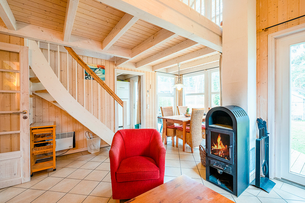 Haus: Ferienhaus im skandinavischen Stil mit Sauna, Whirlpool, Kaminofen, Flachbild-Sat-TV, Radio/CD. Gemütliches Ambiente durch Holzvertäfelungen im ganzen Haus. Geschmackvolle Einrichtung. Allergikerfreundlich. Kostenloser Internetzugang über W-Lan. E-Heizung, teils Fußbodenheizung, Warmwasser über Durchlauferhitzer. Nichtraucherhaus. Terrasse mit Sitzmöbeln. 1 Pkw-Stellplatz im Ferienhausgebiet vorhanden.