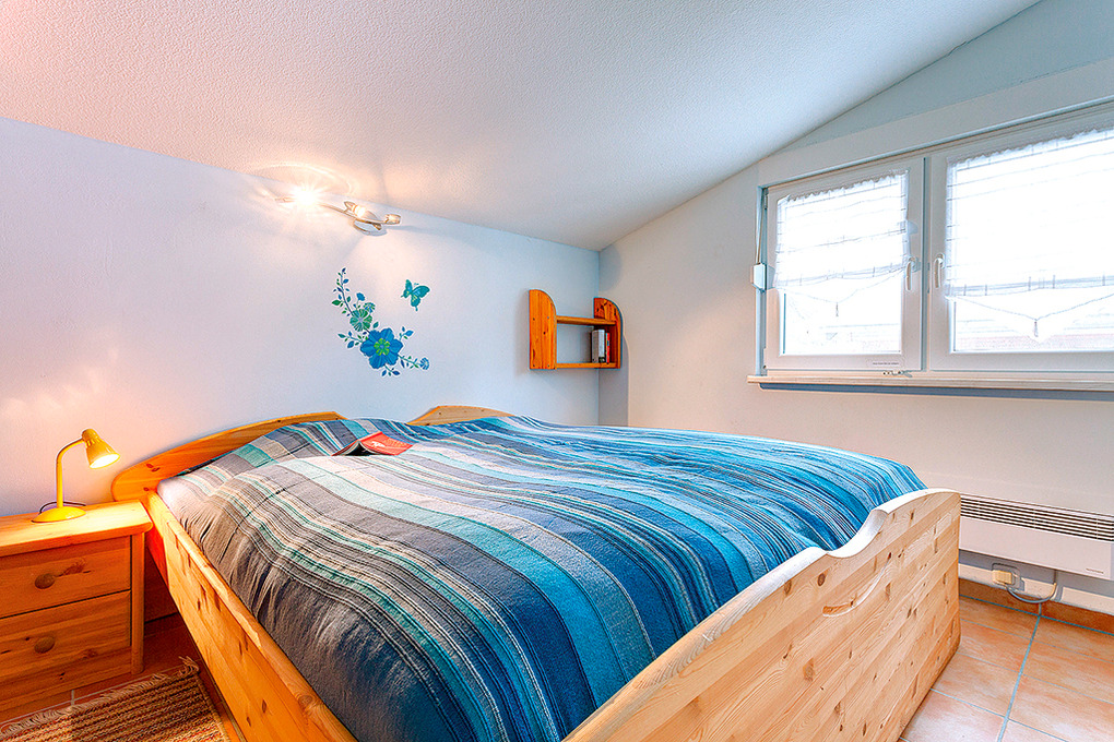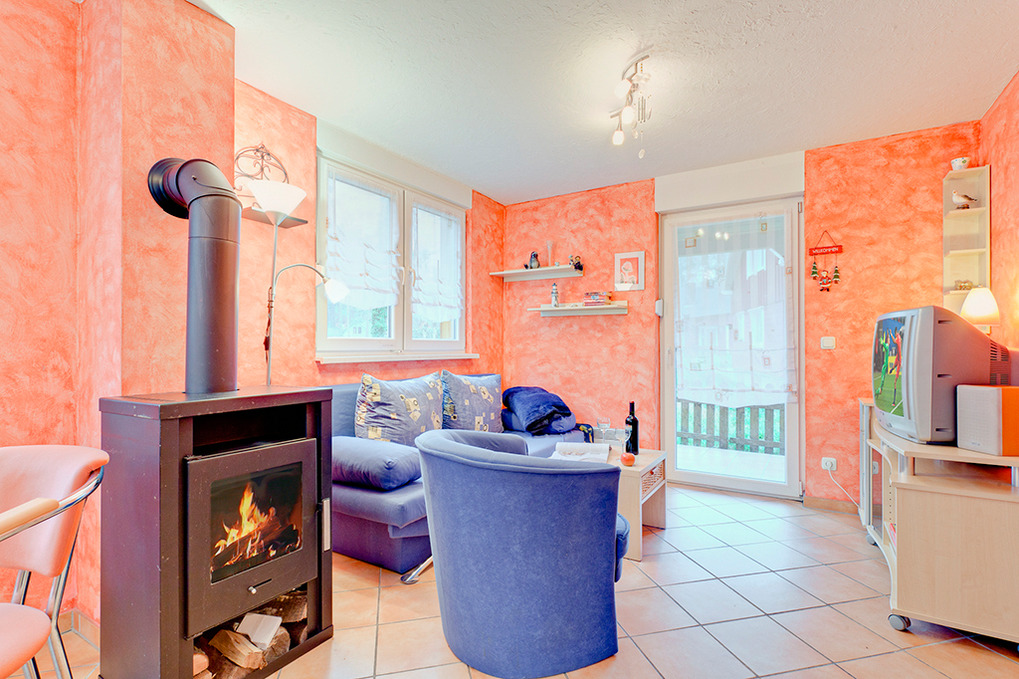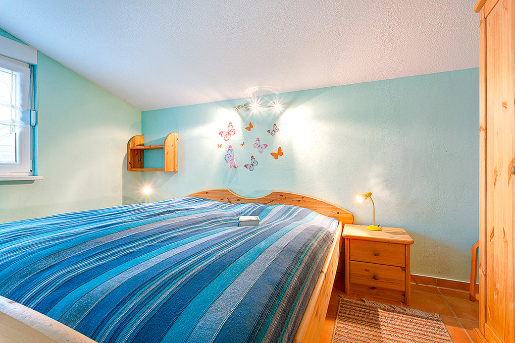 D 92.80 Ferienhaus 2-6 Pers.: 3-Zimmerhaus, ca. 60 qm Wohnfläche über 2 Etagen. Parterre: Schöner Wohn-/Essraum mit Kaminofen, Sitzgruppe (Schlafcouch 2 Pers.), Sat-TV, gut ausgestatteter Küchenzeile (Backofen, Spülmaschine, Mikrowelle). Separates WC. Dachgeschoss mit leichten Schrägen: Zwei Doppelzimmer. Bad/WC.