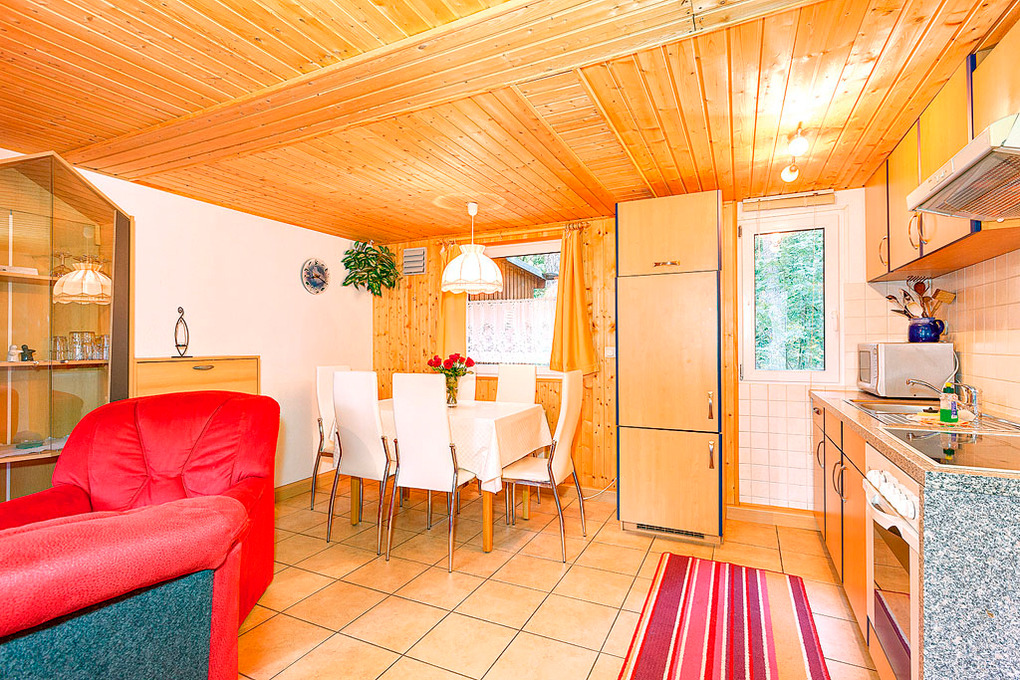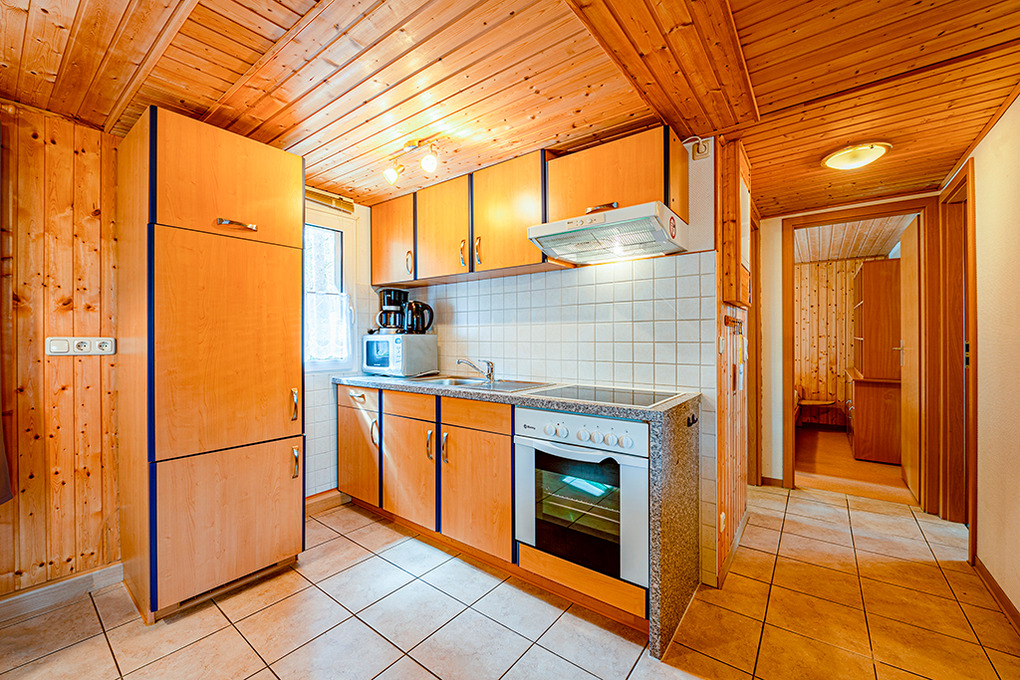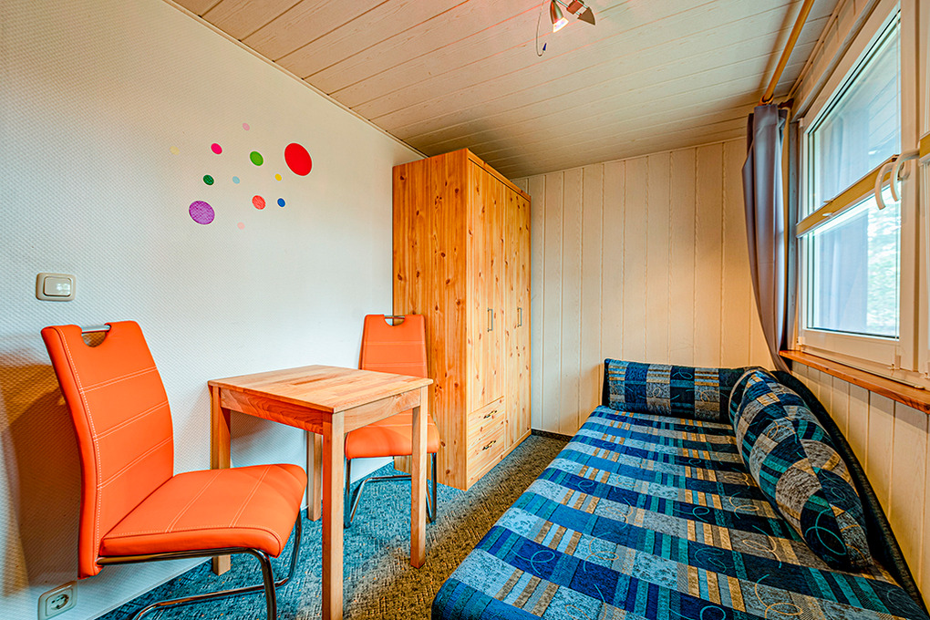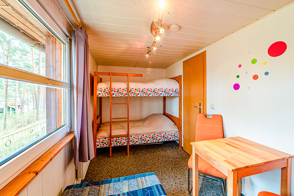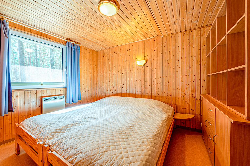 D 92.85 Bungalowhälfte 2-5 Pers.: Geräumiger 3-Zimmerbungalow mit 45 qm Wohnfläche. Wohn-/Essraum mit Essecke, Sat-TV, Radio, Küchenzeile (Backofen, Mikrowelle/Grill). Doppelzimmer. Kleines 3-Bettzimmer mit Etagenbett und Schlafcouch (1 Pers.), Bad/WC.