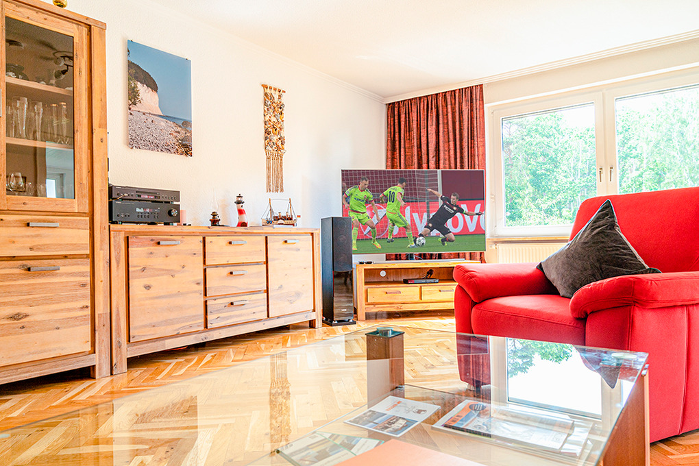 Ort: Ostseebad Baabe. Zentrale Lage in der Nähe des Selliner Sees (600 m). Ortsmitte mit Restaurants, Geschäften 750 m. Ostseestrand mit Promenade 1,1 km.
