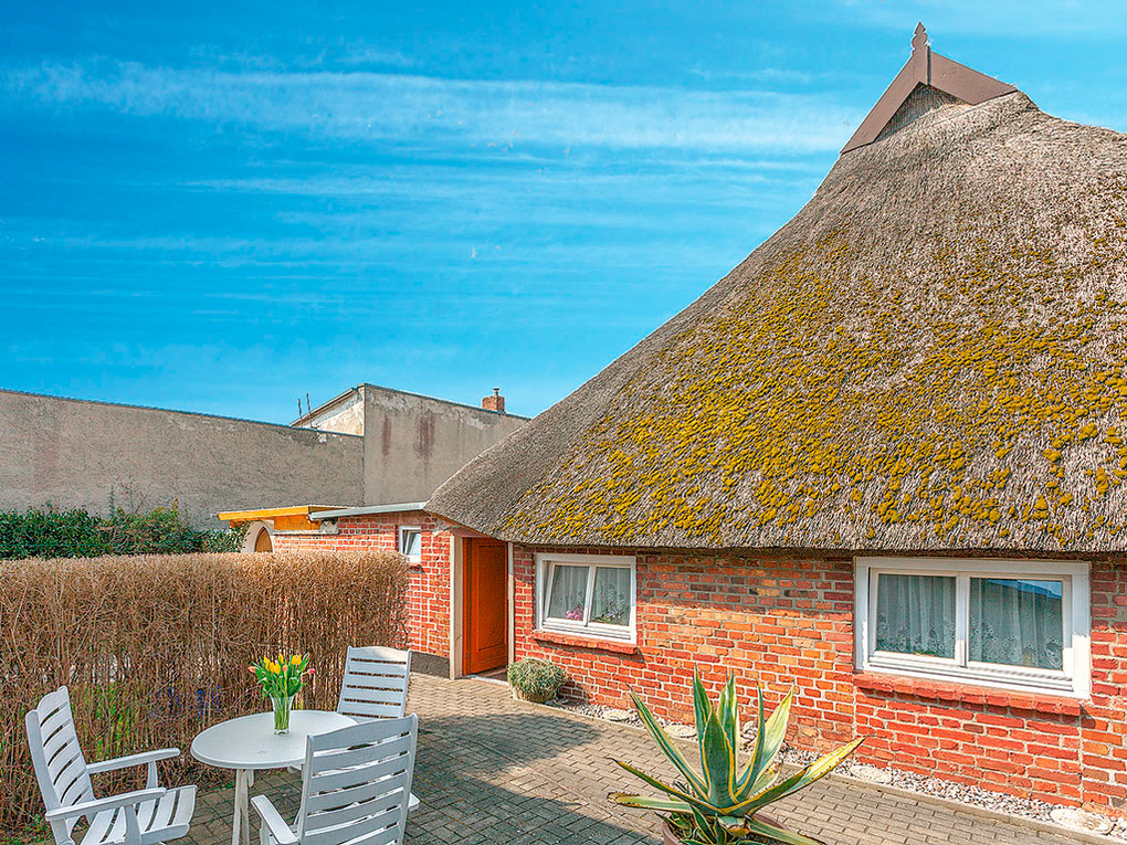 Haus: Reetgedecktes Fischerhaus mit einer Ferienwohnung im Parterre. Separater Eingang. Freundliche Einrichtung, Deckenhöhe 2,00 m. Kostenloser Internetzugang über W-Lan. Zentralheizung. Terrasse mit Sitzmöbeln. 1 Pkw-Stellplatz am Haus.