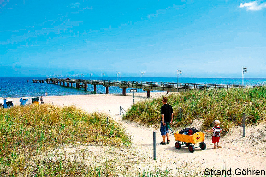 Ort: Ostseebad Göhren. Ruhige, dennoch zentrale Lage nahe der Waldpromenade. Ortsmitte 300 m, Ostseestrand 300 m. Bade- und Erlebniswelt "Ahoi Rügen" mit 600 qm Wasserflächen (außen & innen), Kinderbecken, Rutsche, Saunalandschaft, Dampfbad, Whirlpools, Restaurants 6 km.