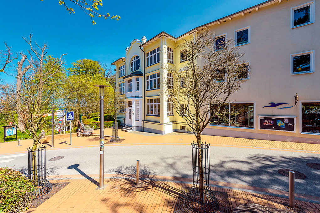 Ort: Ostseebad Göhren. Beste Lage unweit von Strandpromenade und Seebrücke. Ostseestrand 200 m. Ortsmitte mit Geschäften, Restaurants 150 m. Bade- und Erlebniswelt "Ahoi Rügen" mit 600 qm Wasserflächen (außen & innen), Kinderbecken, Rutsche, Saunalandschaft, Dampfbad, Whirlpools, Restaurants 6 km.