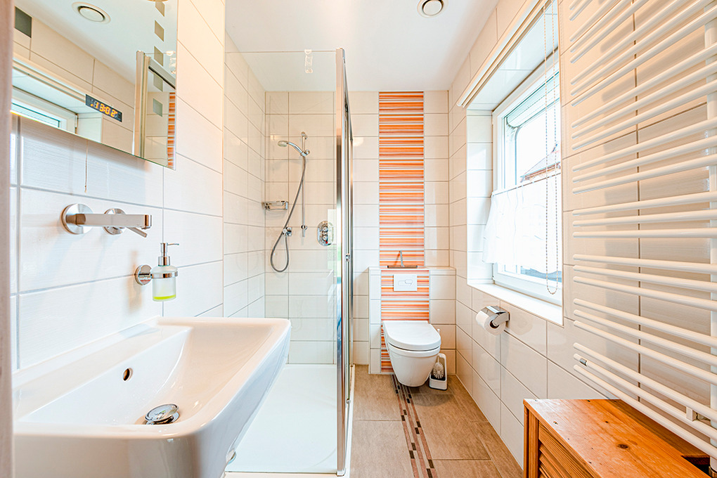 Haus: Gepflegtes Ferienhaus mit 2 ansprechenden Ferienwohnungen. Moderne geschmackvolle Einrichtung. Kostenloser Internetzugang über WLan. Fewo in der 1. Etage mit Kaminofen. Zentralheizung. Gemeinschaftlicher Fahrradschuppen. 1 Pkw-Stellplatz/Fewo.