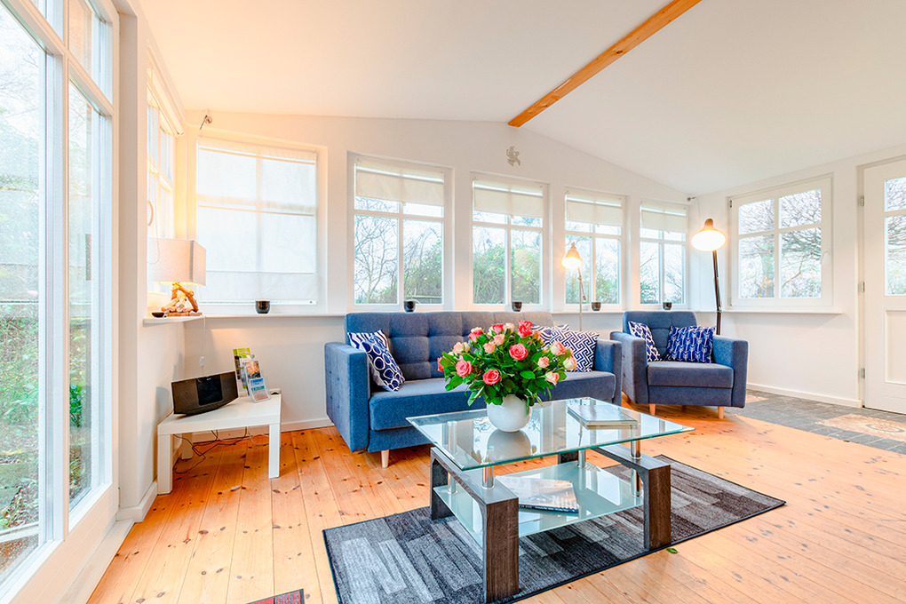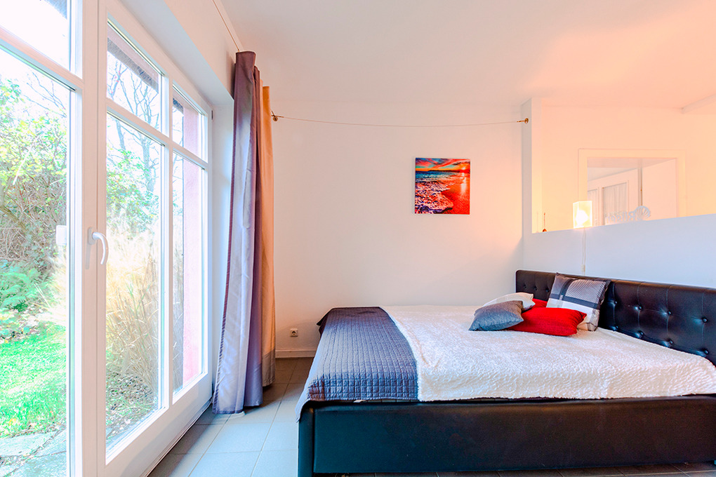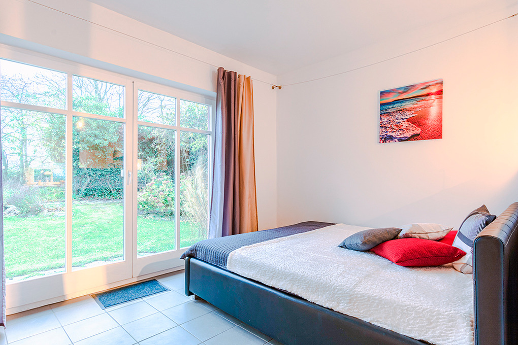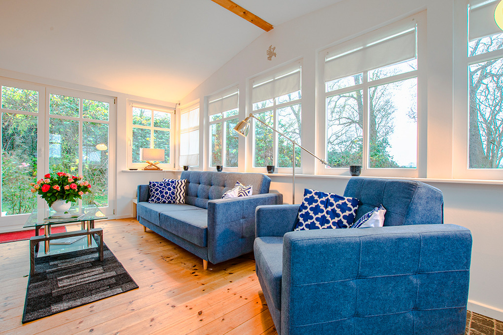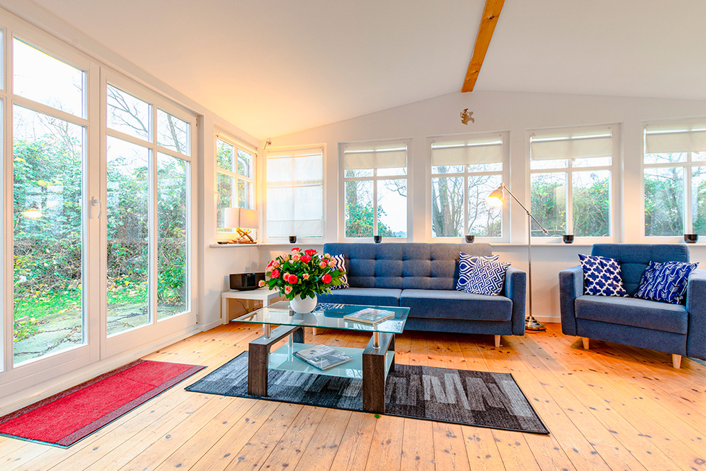 D 105.140 Wohnung 2-3 Pers.: 2 1/2-Zimmerwohnung, 67 qm Wohnfläche, Parterre. Schönes, rundum verglastes Wohnzimmer im hellen Wintergarten mit Couchgarnitur (Ausziehcouch 1 Pers.), Sat-TV. Küche mit gut ausgestatteter Küchezeile (Backofen, Mikrowelle, Spülmaschine). Schlafzimmer hinter Raumteiler mit Doppelbett, Kaminofen, Ausgang zum Garten. Bad/WC. Waschmaschine. Separate Terrasse mit Sitzmöbeln.