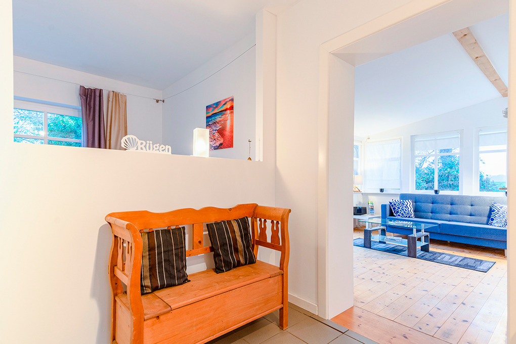 Ort: Renz bei Garz. Ruhige ländliche Alleinlage in der Nähe der Puddeminer Wiek mit Seglerhafen (3,3 km) und dem Naturparadies Schoritzer Wiek (4,6 km) mit Kranichhorsten inmitten des Biosphärenreservates Süd-Ost Rügen. Restaurants, Einkaufsmöglichkeiten in Garz 2,8 km. Badestelle 2,6 km. Putbus mit Schlosspark, Theater 12 km. Hafen Lauterbach mit Ausflugsschiffen 14 km. Ostseebad Binz mit Ostseestrand 25 km. Hansestadt Stralsund mit historischer Altstadt, Theater, Museen, Hafen, Meeresaquarium, Tierpark, Ostseetherme 19 km.