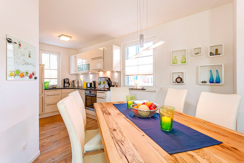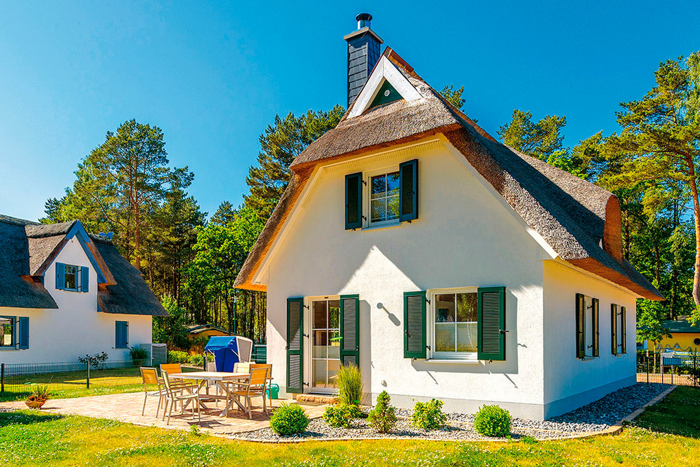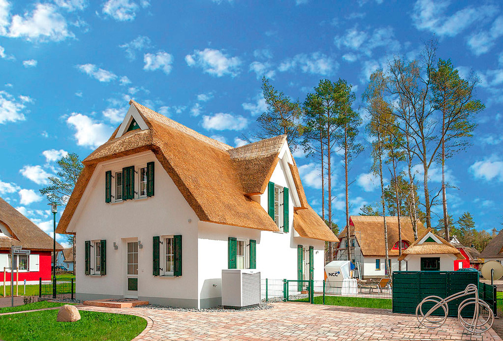 Haus: Exklusives Reetdachhaus mit Kamin, 2013 neu erbaut. Gehobene Ausstattung mit moderner, geschmackvoller Einrichtung. Kostenloser Internetzugang über W-Lan. Waschmaschine/Trockner. Fußbodenheizung. Terrasse mit Sitzmöbeln, Strandkorb, Grill. Schöner umzäunter Garten. 1 Pkw-Stellplatz am Haus.