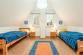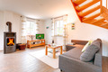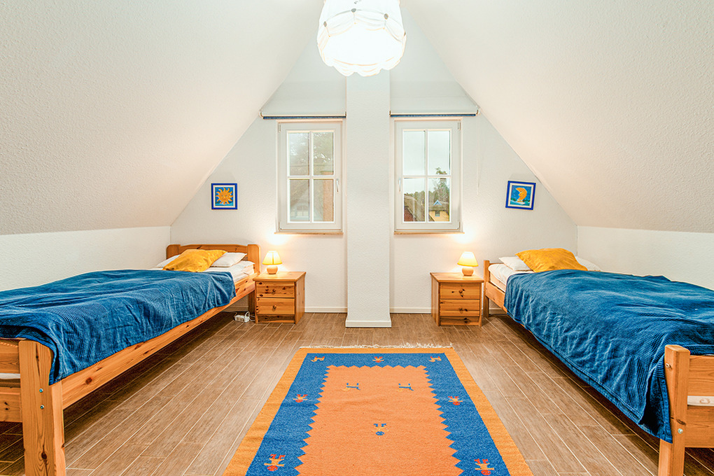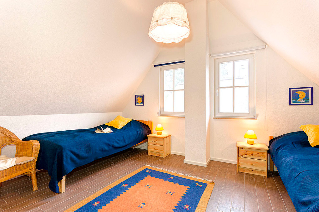 D 120.12 Ferienhaus 2-5 Pers: Schönes 3-Zimmerhaus mit 95 qm Wohnfläche über 2 Etagen. Parterre: Gemütlicher Wohn-/Essraum mit Kaminofen, Bibliothek, Couchgarnitur (Ausziehcouch 1 Pers.), Sat-TV, Radio-CD, Esstisch, sehr gut ausgestatteter Einbauküche (Backofen, Spülmaschine). Bad: Sauna, Du, Wb, WC. Abstellraum mit Waschmaschine. 1. Etage: 2-Bettzimmer. 3-Bettzimmer mit Doppelbett, Juniorbett (75 x 165 cm). Bad: Du, Bw, Wb, WC.