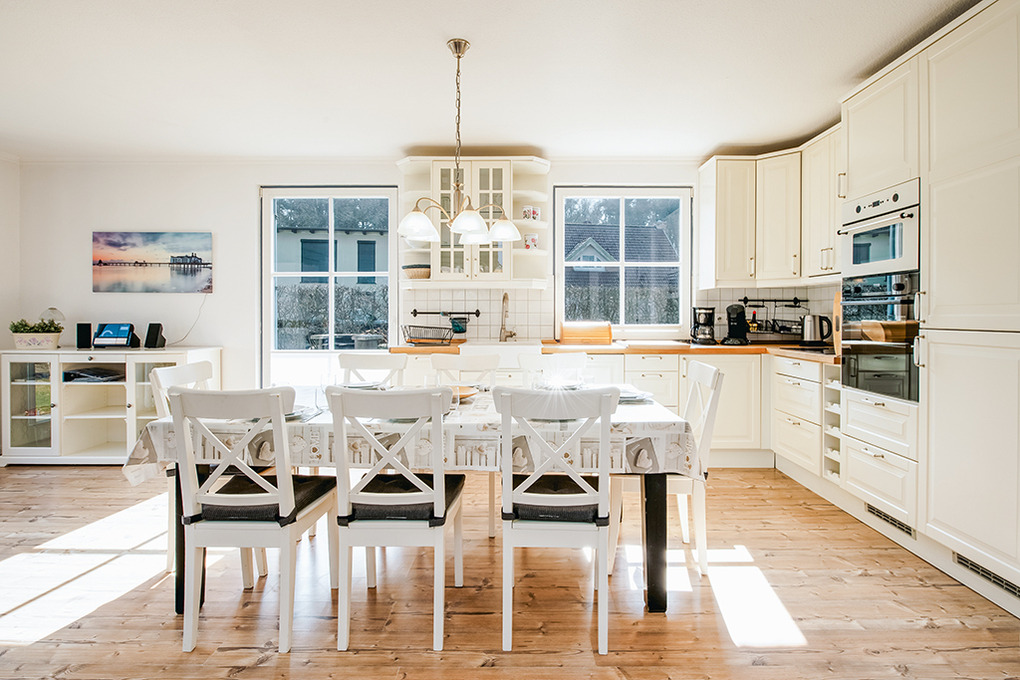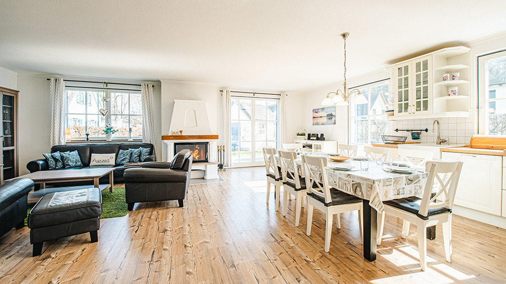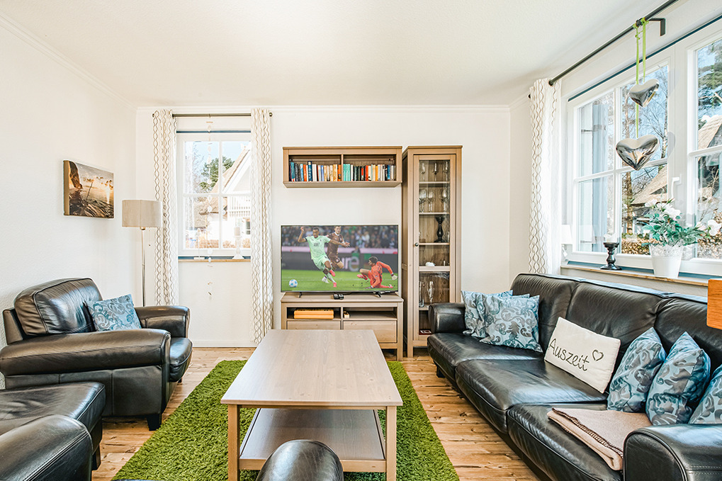 Haus: Exklusives Reetdachhaus mit Sauna und Kaminofen, 2012 neu erbaut. Nichtraucherhaus. Komfortable Ausstattung mit moderner, geschmackvoller Einrichtung im Landhausstil. Kostenloser Internetzugang über W-Lan. Fußbodenheizung. Terrasse mit Sitzmöbeln, Grill. 2 Pkw-Stellplätze am Haus.