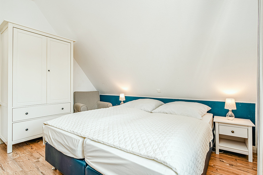 D 120.17 Ferienhaus 2-8 Pers.: Schönes 6-Zimmerhaus mit 129 qm Wohnfläche über 2 Etagen. Parterre: Gemütlicher Wohn-/Essraum mit Kamin, Couchgarnitur, Sat-TV, DVD, Radio-CD, Esstisch, sehr gut ausgestatteter Einbauküche (Backofen, Mikrowelle, Spülmaschine). Saunaraum mit Dusche, Waschmaschine. Bad/WC. 1. Etage: Vier Doppelzimmer. Bad mit Bw, Du, Wb, WC.
